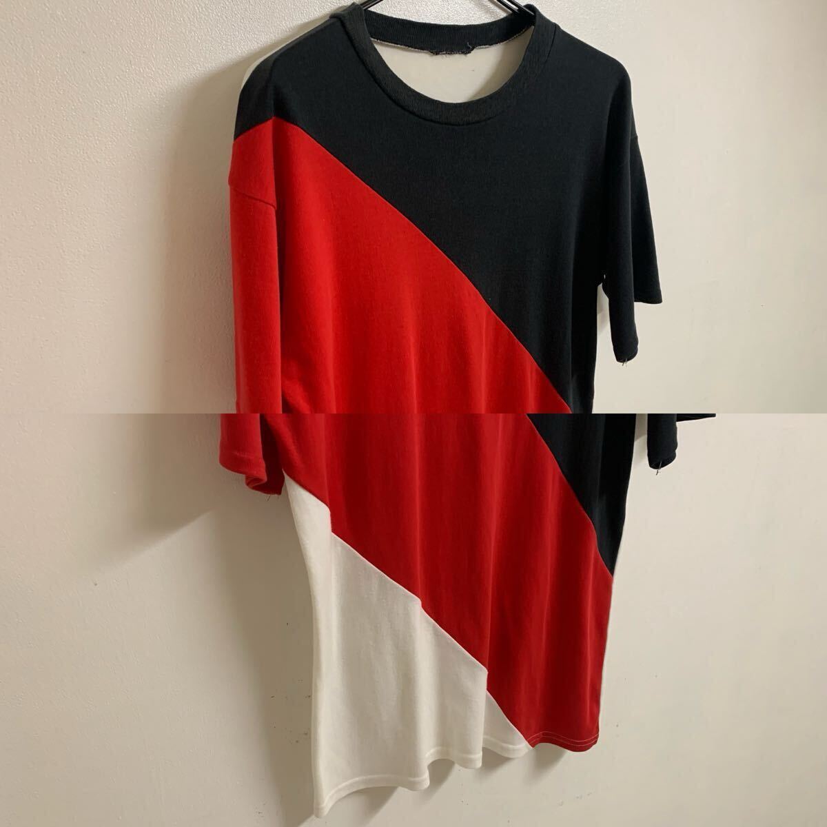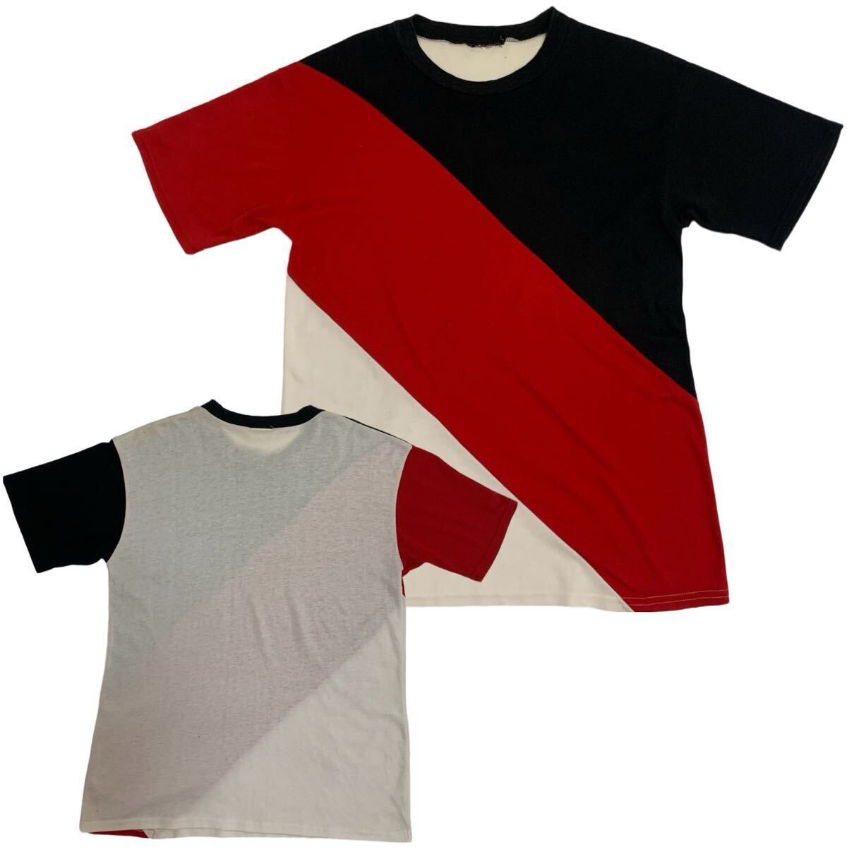 【IETM】トリコロール 3色カラー切替 半袖カットソー 半袖Tシャツ トップス ブラック レッド ホワイト M〜L位 アーカイブ