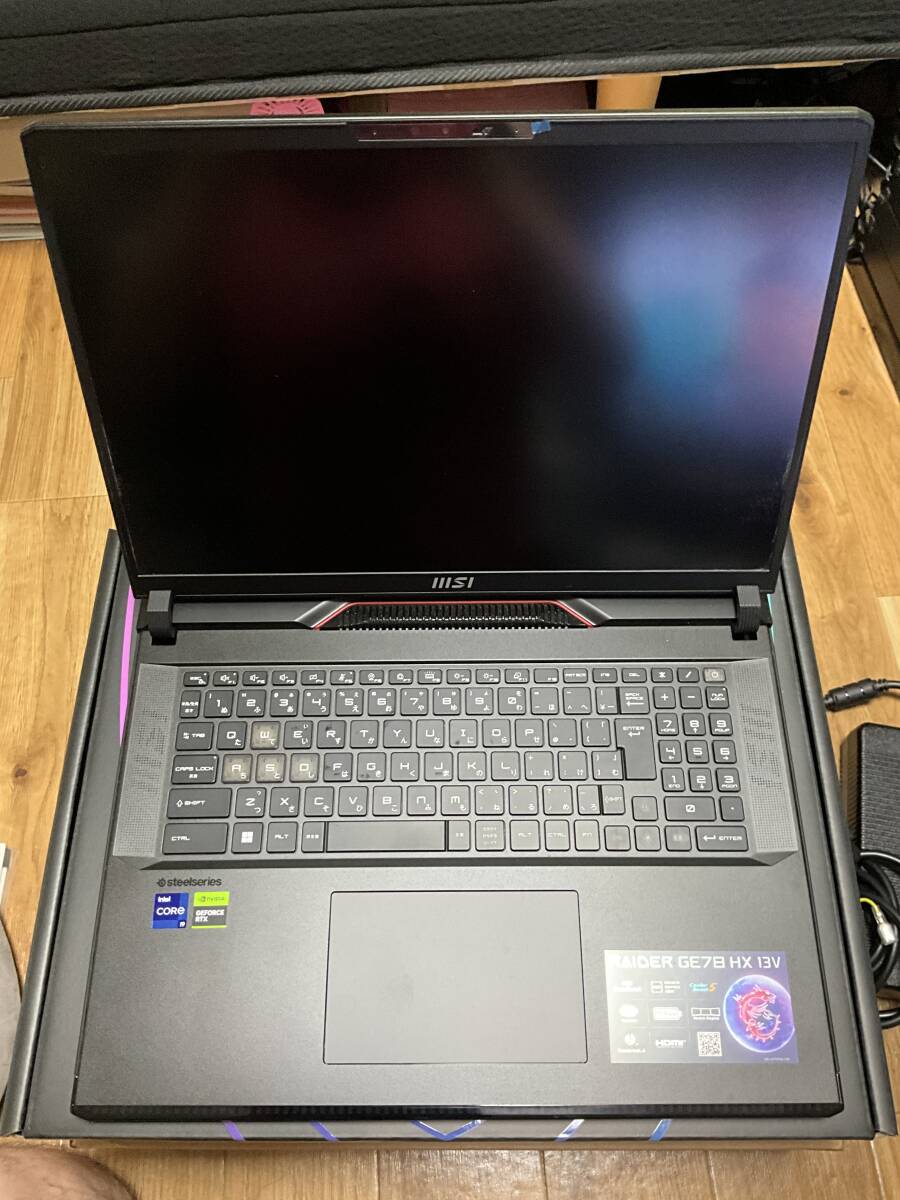 ●新品同様、かなりきれいな MSI Raider-GE78HX-13VH-329JP になります。大手量販店で昨年12月に購入し、いくつかのAIに関わるアプリケーションを試したのですが、メイン機が不調な際に使用したのみで、あまり出番がなかった機体です。