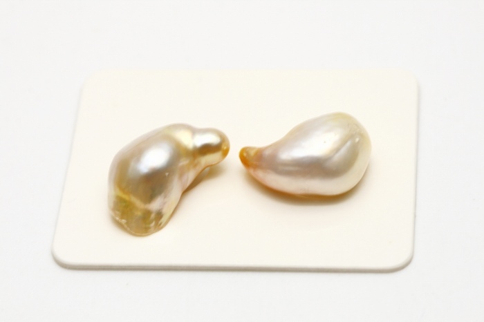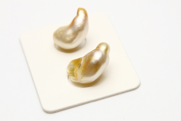 | 南洋白蝶真珠パールルース ケシ 2 ピース 14×8mm ナチュラルゴールドカラー |