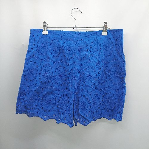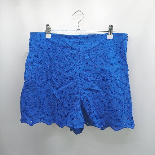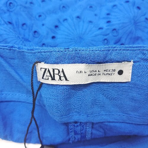 ◇ ⊂ ZARA ザラ サイドジップ レース ショートパンツ サイズL ブルー レディース E