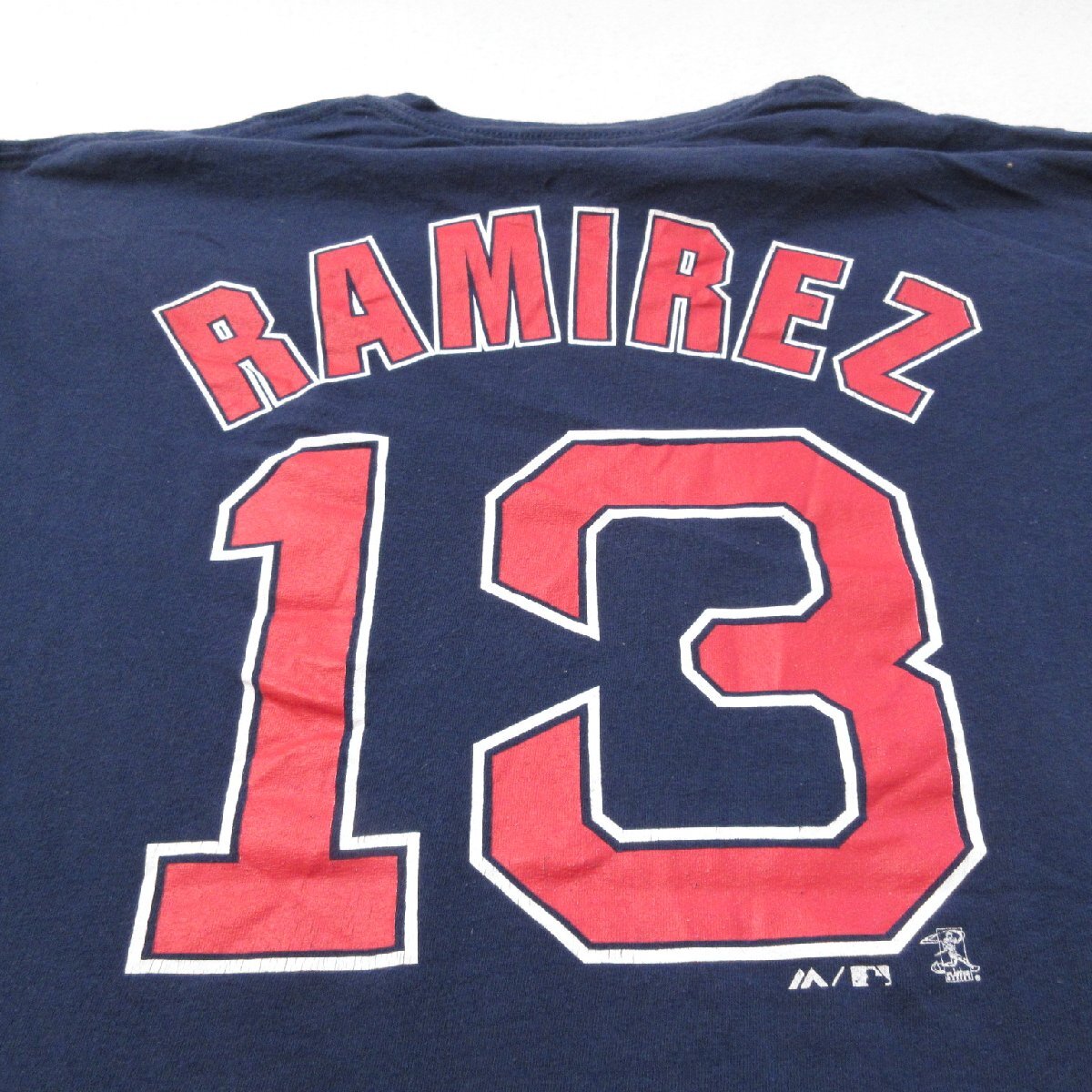 【商品名】 L★古着 マジェスティック 半袖 Tシャツ メンズ MLB ボストンレッドソックス ハンリーラミレス 13 クルーネック 紺 メジャーリーグ ベースボール 野球