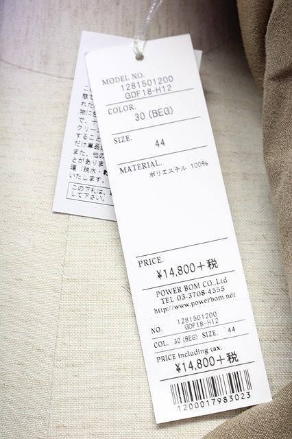 ベージュ/44/タグ付き/-/GDF18-H12 定価¥14,800+税 | |||||||||||||||