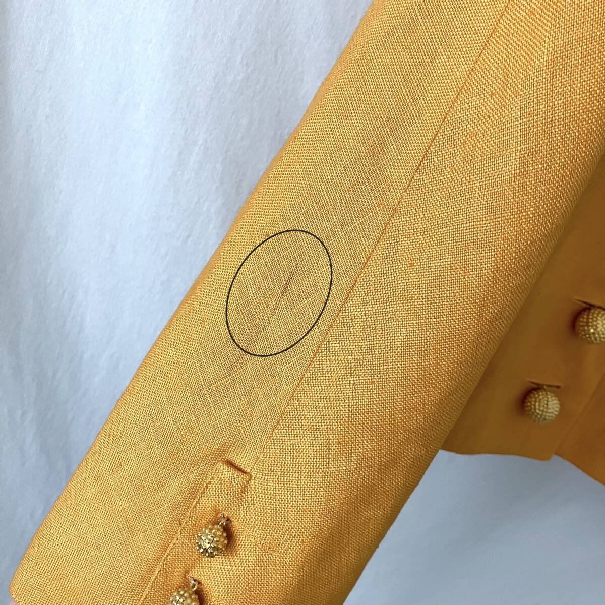 ボタンは金色のボール状のものが使われており、個性的な1着です。