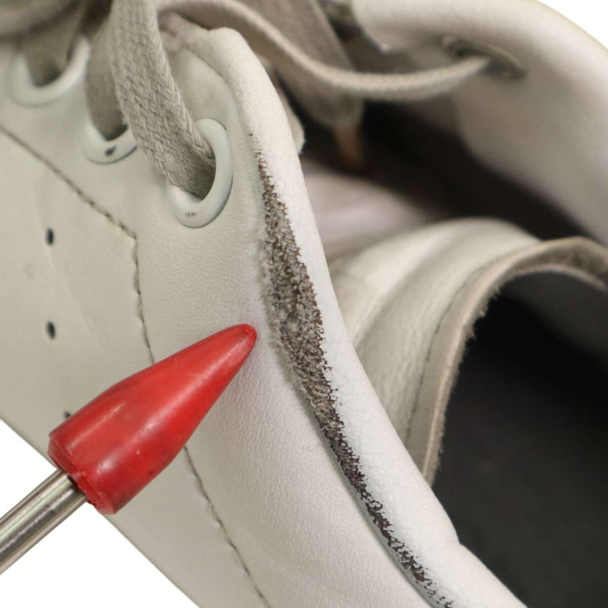 所々に薄い汚れと擦れ、左右裏面のかかと部分に欠損がございます。着用に問題はございません。