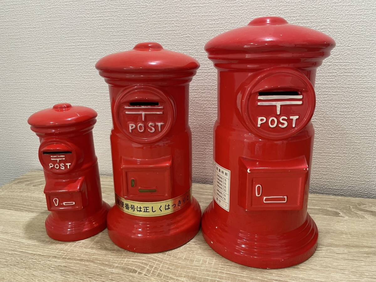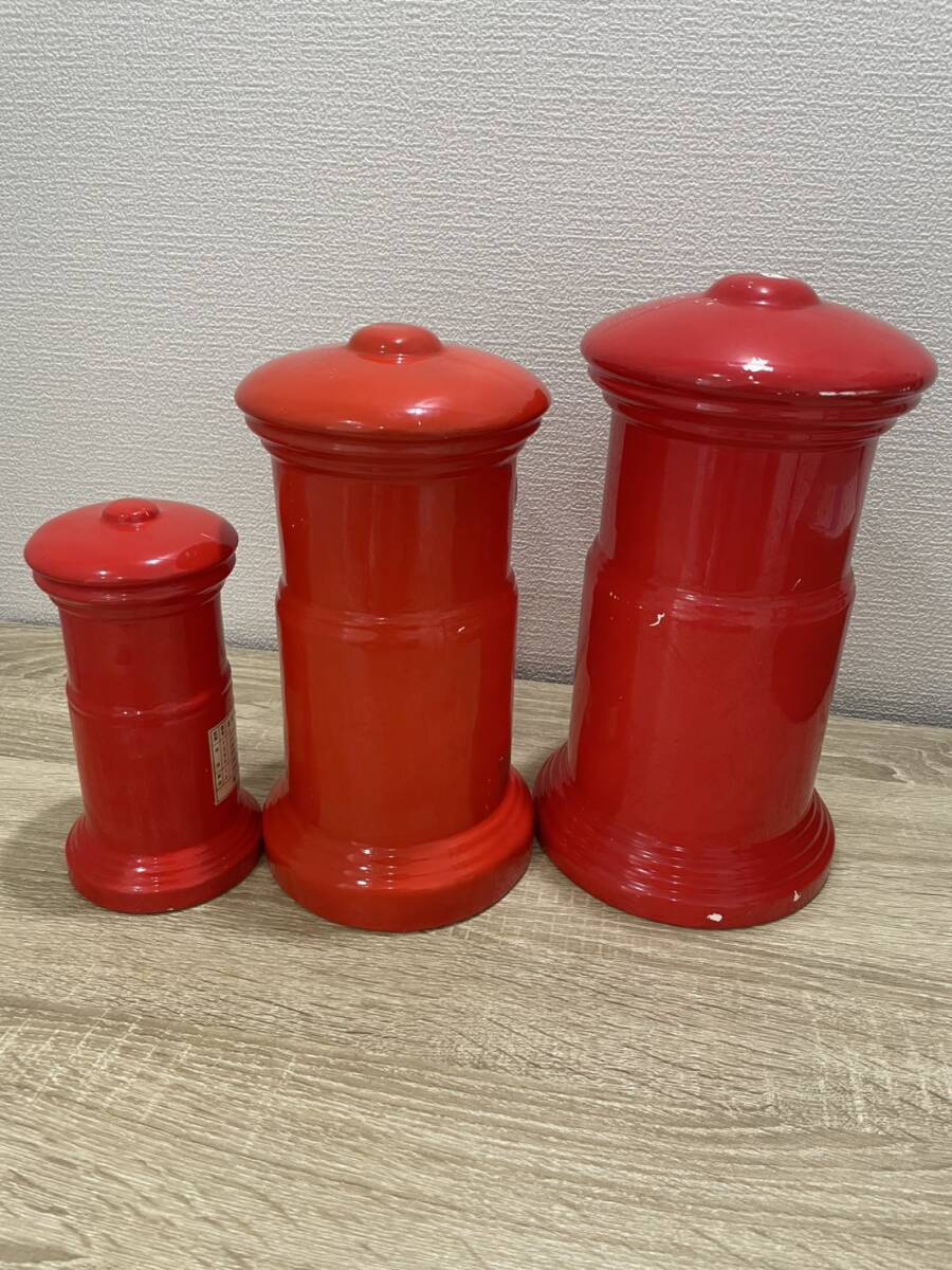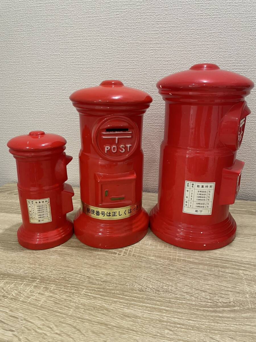 現状渡し 陶器製 郵便ポスト 貯金箱 3個セット 昭和レトロ 置物 インテリア オブジェ 雑貨 赤です。