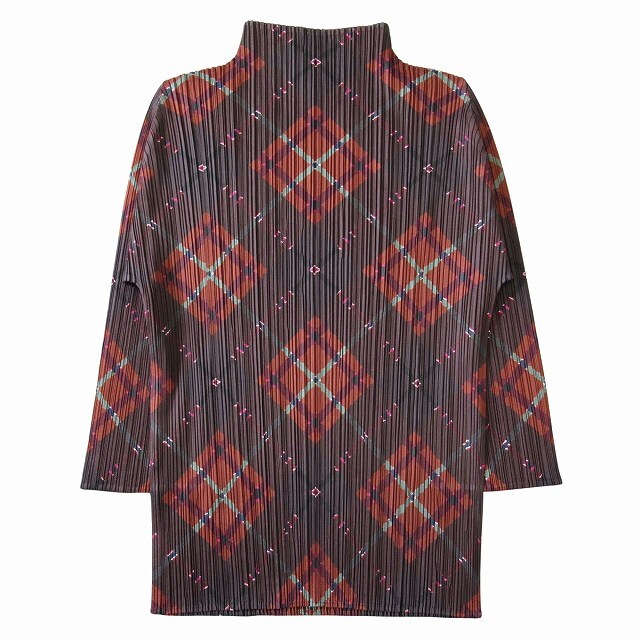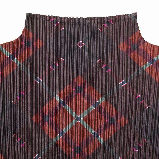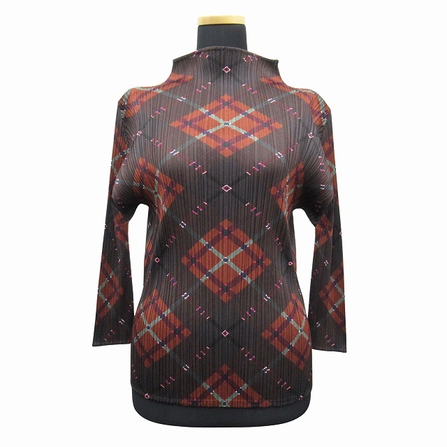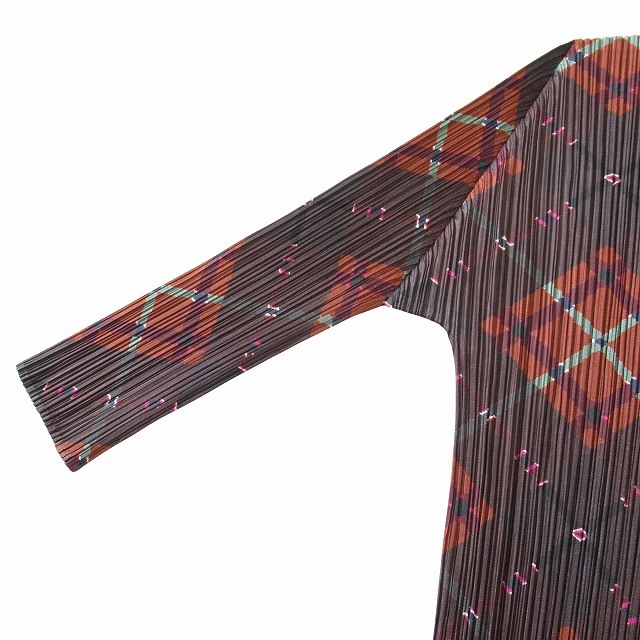 極美品 09AW プリーツプリーズ PLEATS PLEASE イッセイミヤケ ISSEY MIYAKE プリーツ加工 チェック 総柄 カットソー 七分袖 3 ◆7