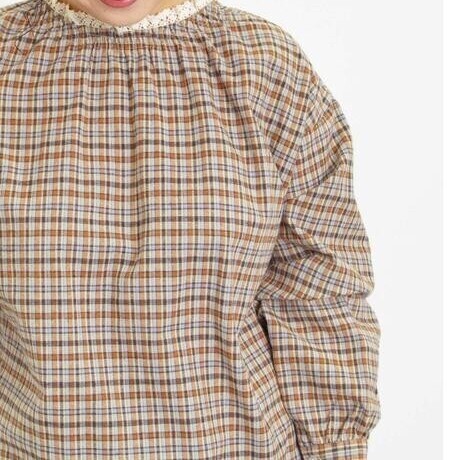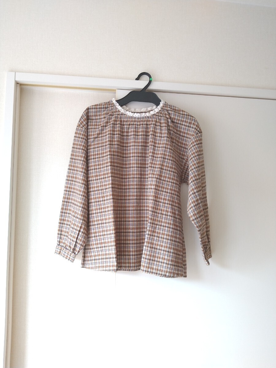 襟に施されたレースが可愛らしいアクセントになるプルオーバーブラウス。