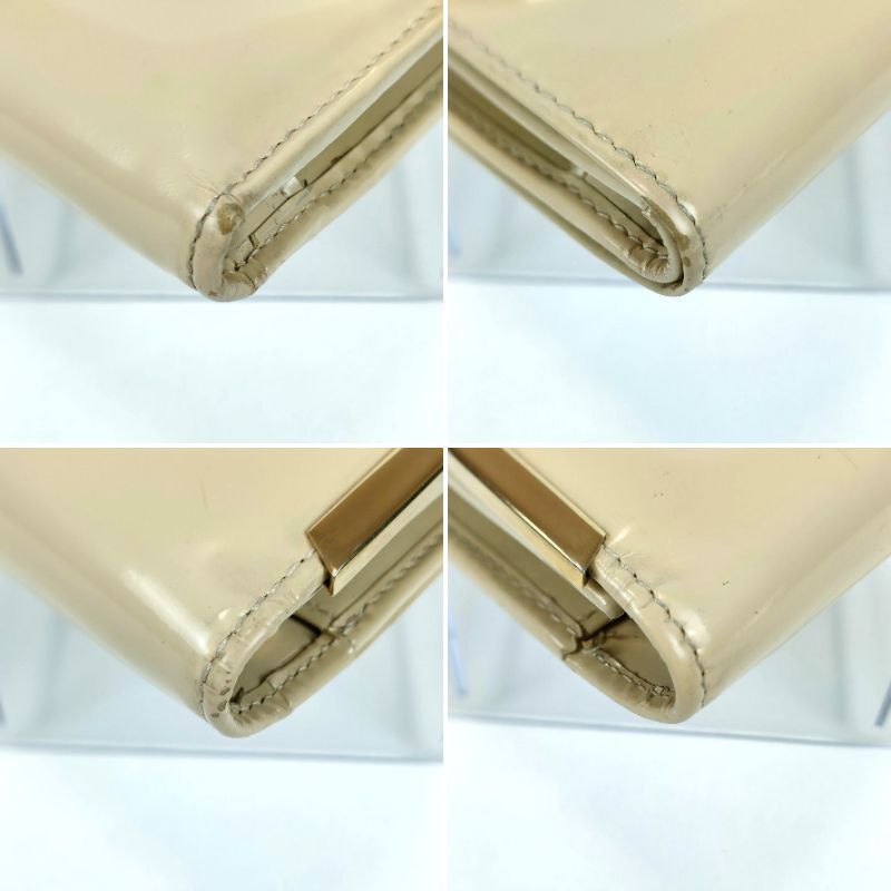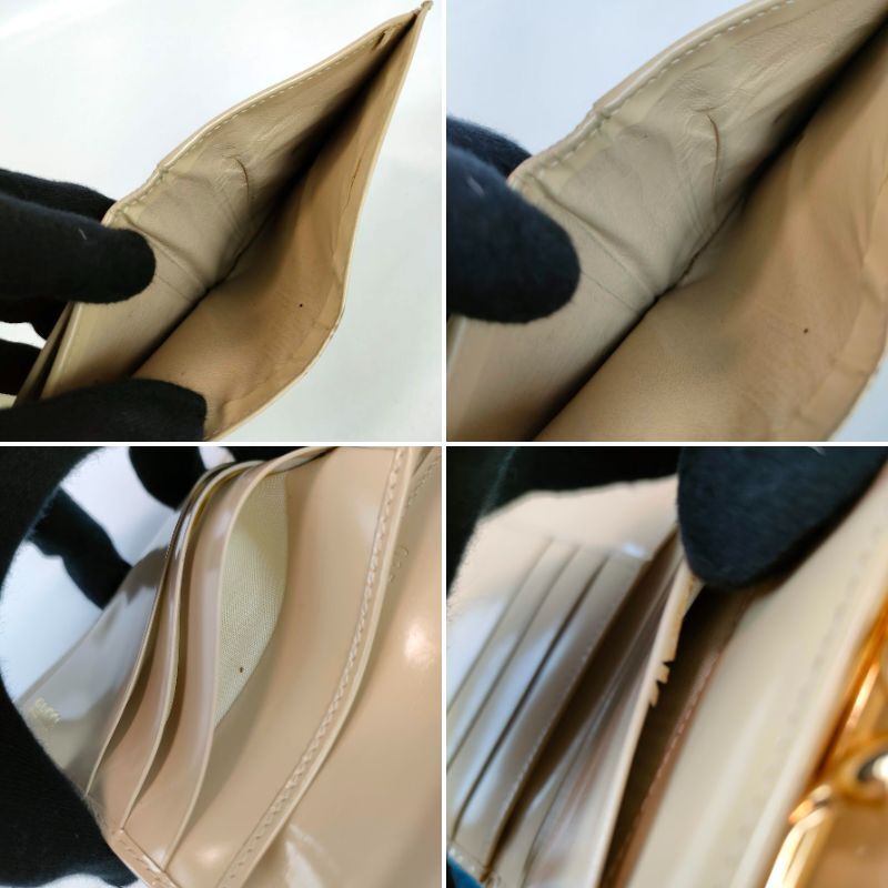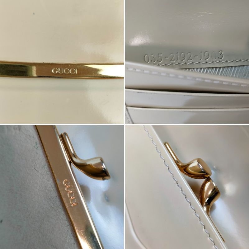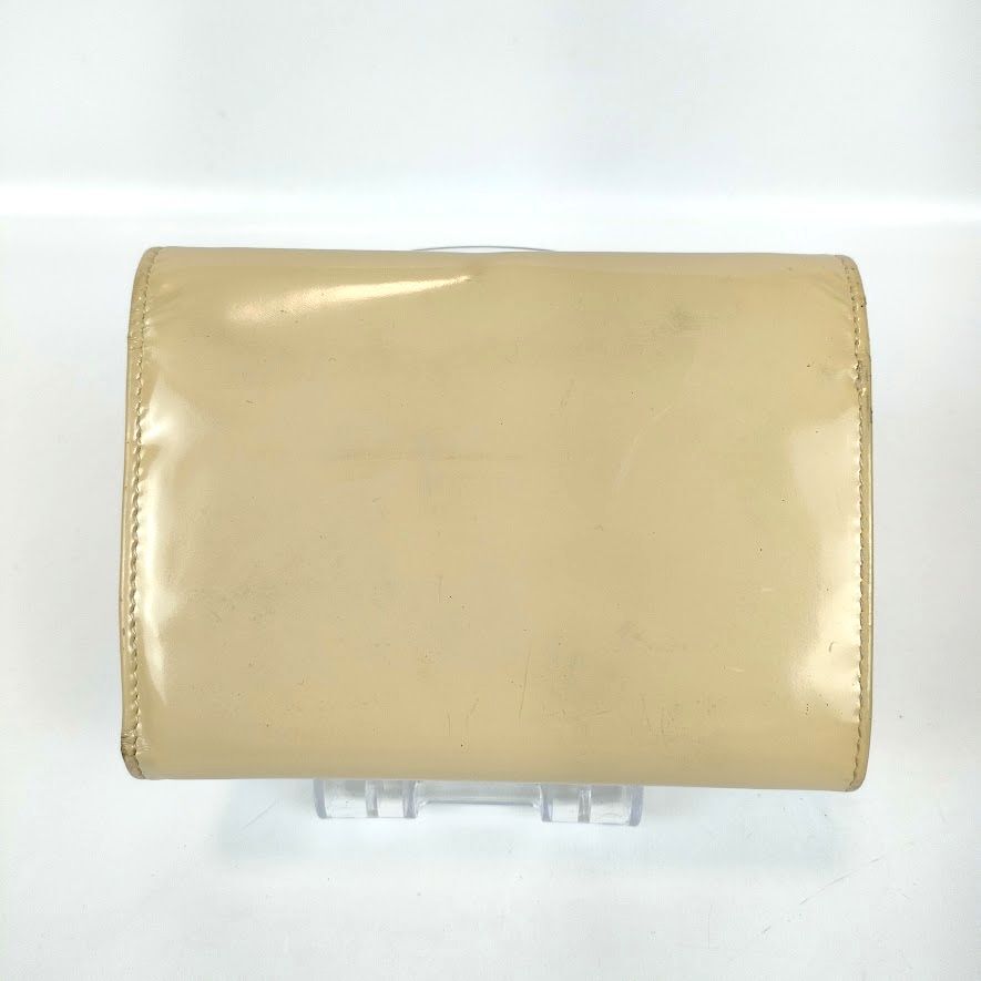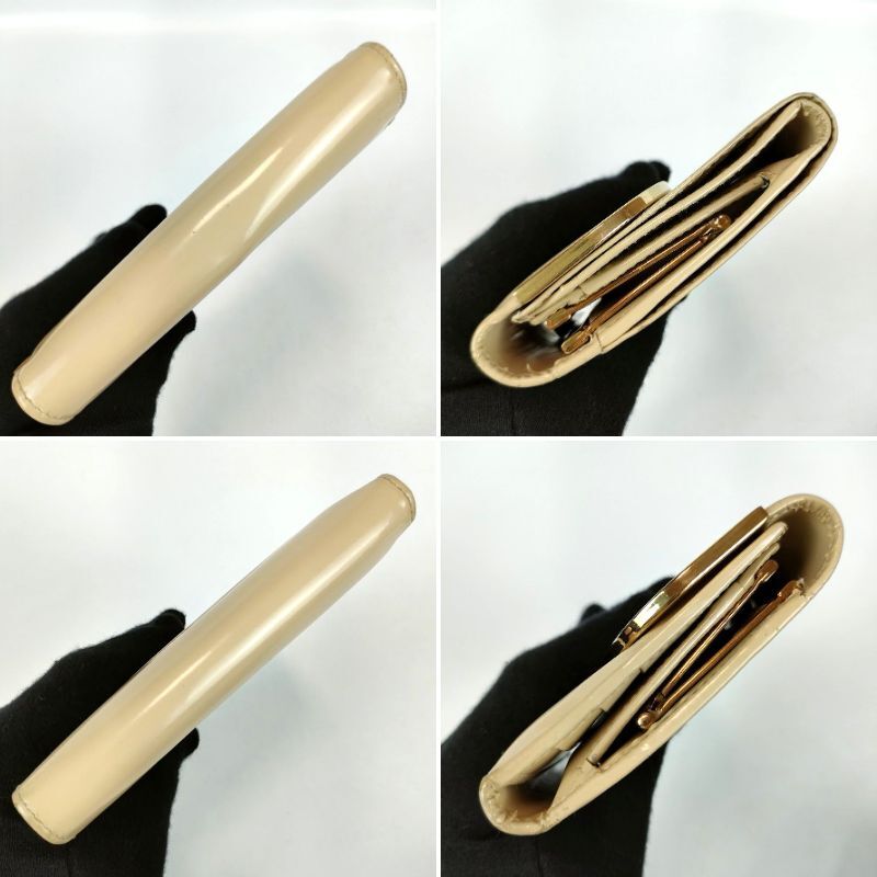 GUCCI グッチ 三つ折り 財布 がま口 ホック ベージュ エナメル パテント レザー ヴィンテージ 金具ゴールド オールドグッチ レア 希少 ロゴ