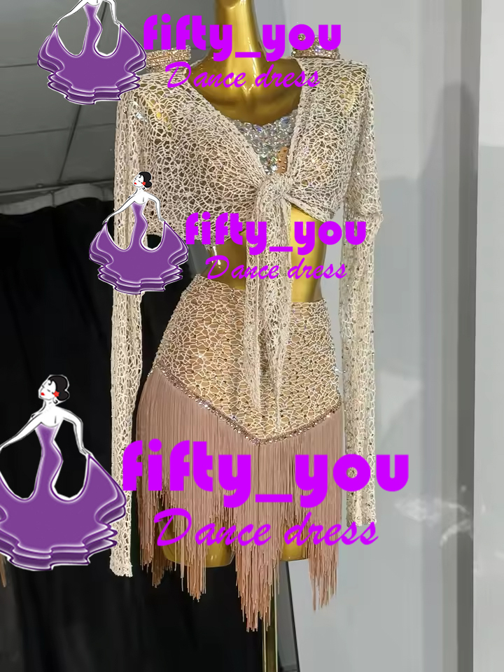 新品fifty_you セミオーダー  レディース社交ダンスラテン競技衣装 2WAYS  肌色系 セット品