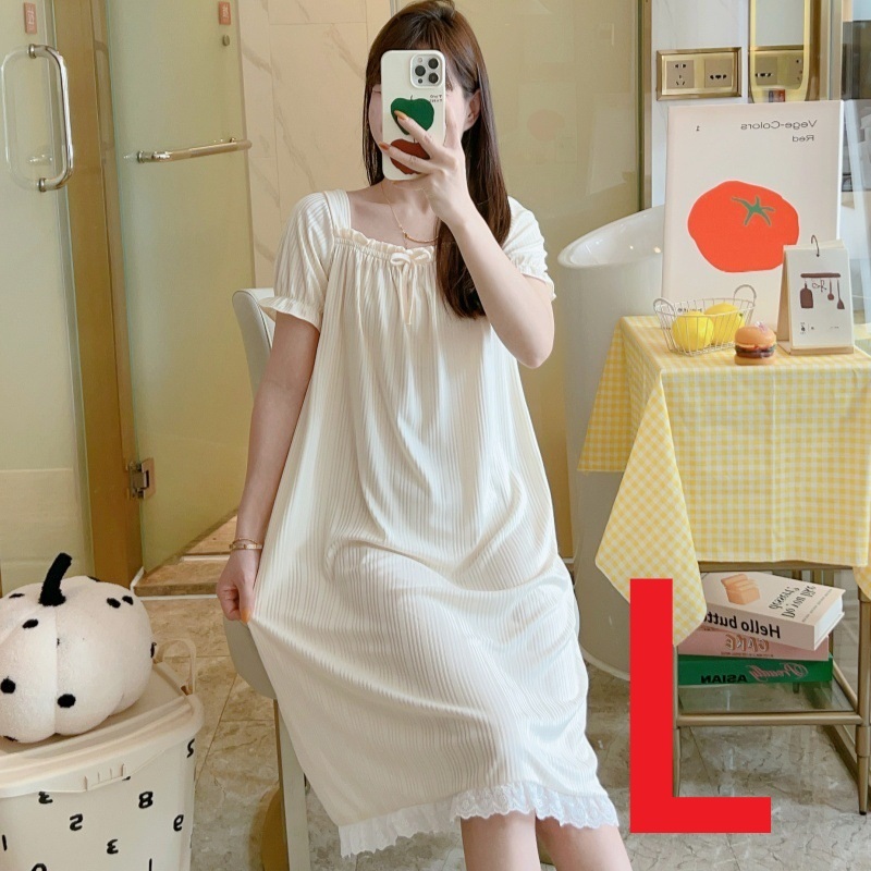 【54-3】白・ナイトウェア・ルームウェア・ネグリジェ ・L