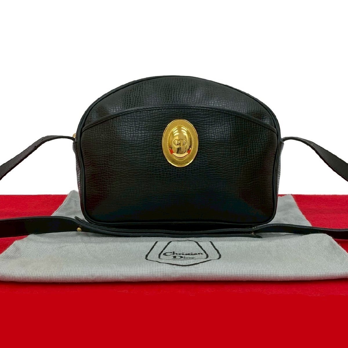 極 美品 袋付き Christian Dior クリスチャンディオール ヴィンテージ CD ロゴ 金具 レザー ショルダーバッグ ポシェット ブラック 05881