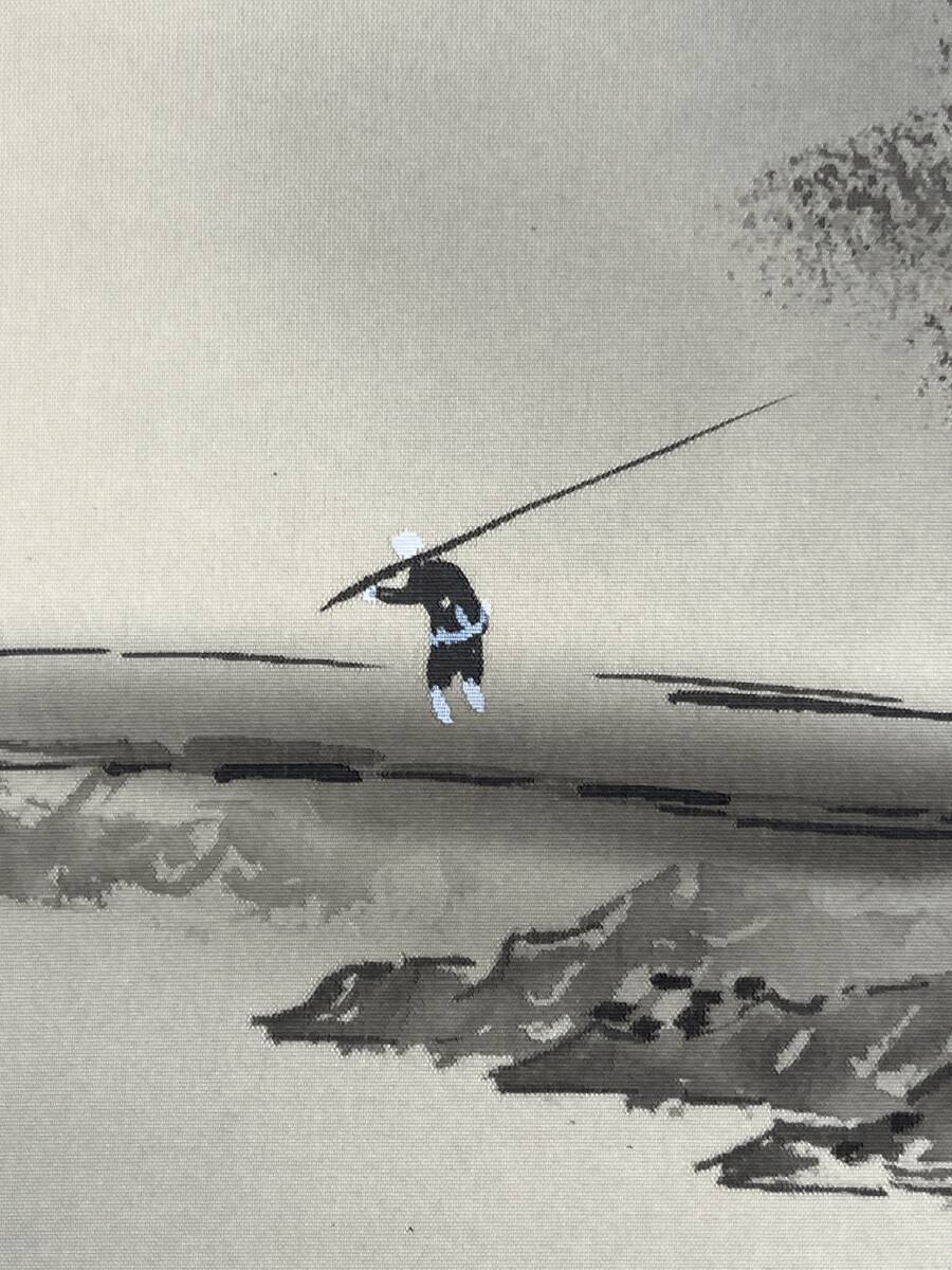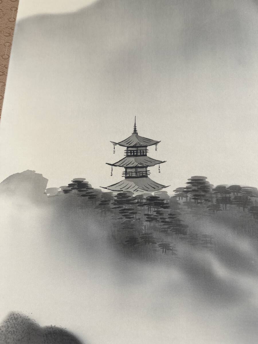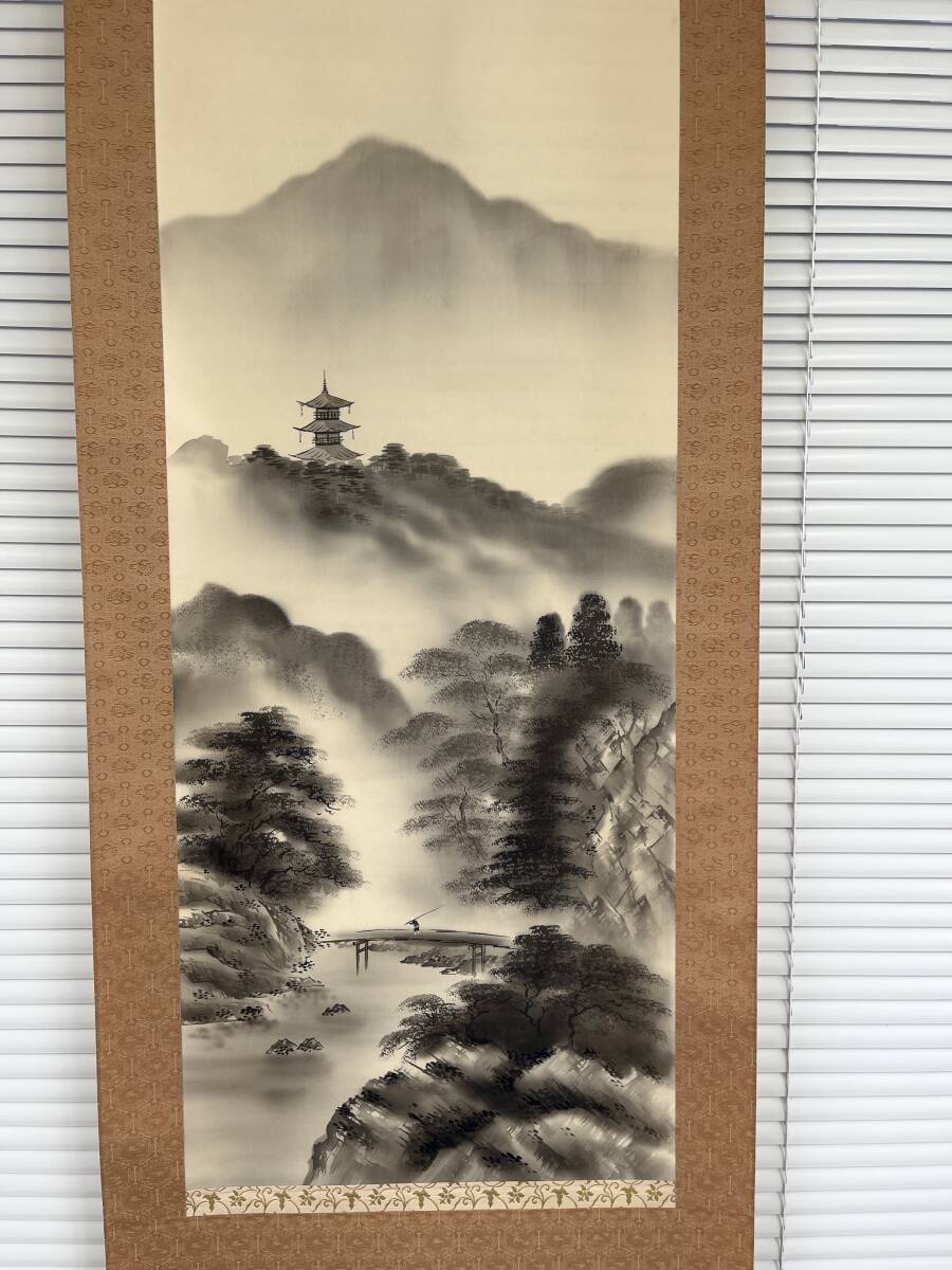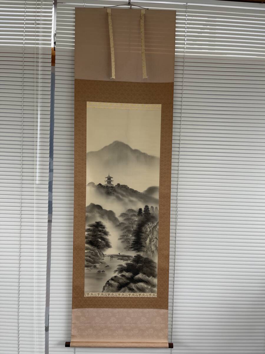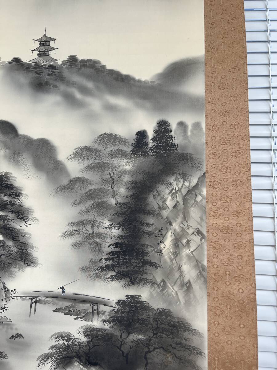 商品名 | 【真作】掛軸 村井孝《水墨山水》絹本 落款 日本画 共箱 紙箱 |