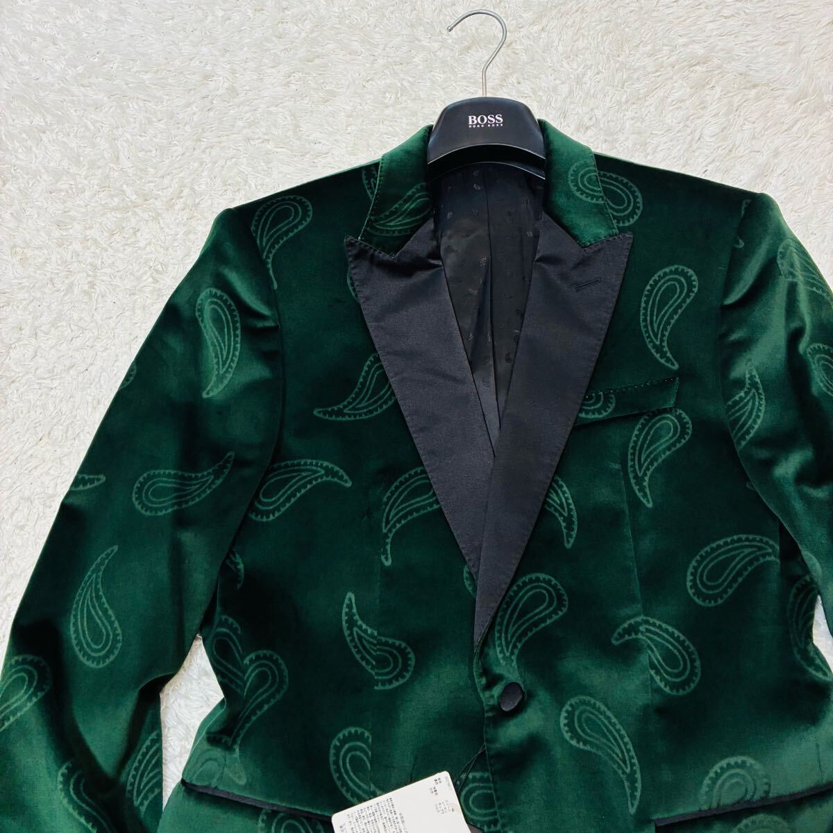 美しいグリーンのベロア生地にペイズリー柄を織り込んだ上品で高級感のあるデザイン。