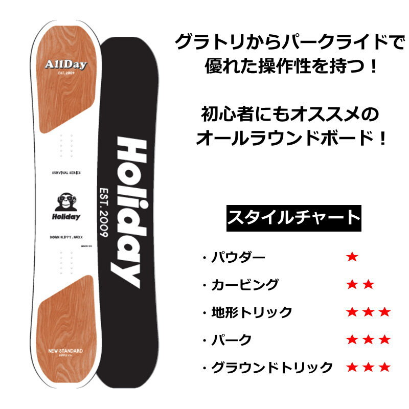 50%OFF 【即納】 メンズ スノーボード 板 型落ち HOLIDAY ALLDAY 151cm 23-24 ホリデイオールデイ グラトリ ハイブリッドキャンバー
