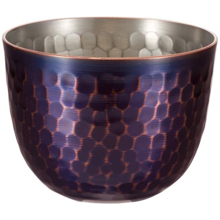燕の伝統工芸技術、鎚起銅器の匠職人がひとつひとつ表面に目視着色技法で丹精込めて色付けした鎚目模様のぐい?みです。その色彩は熟練工が永い年月をかけ伝統工芸の技法を用い研究を重ねた仕上げ方法による逸品です。