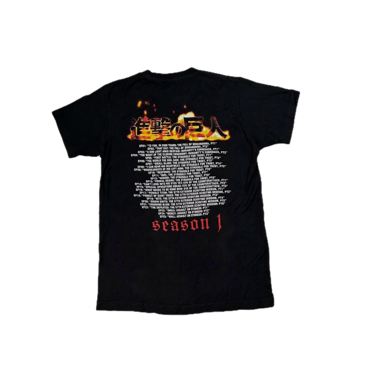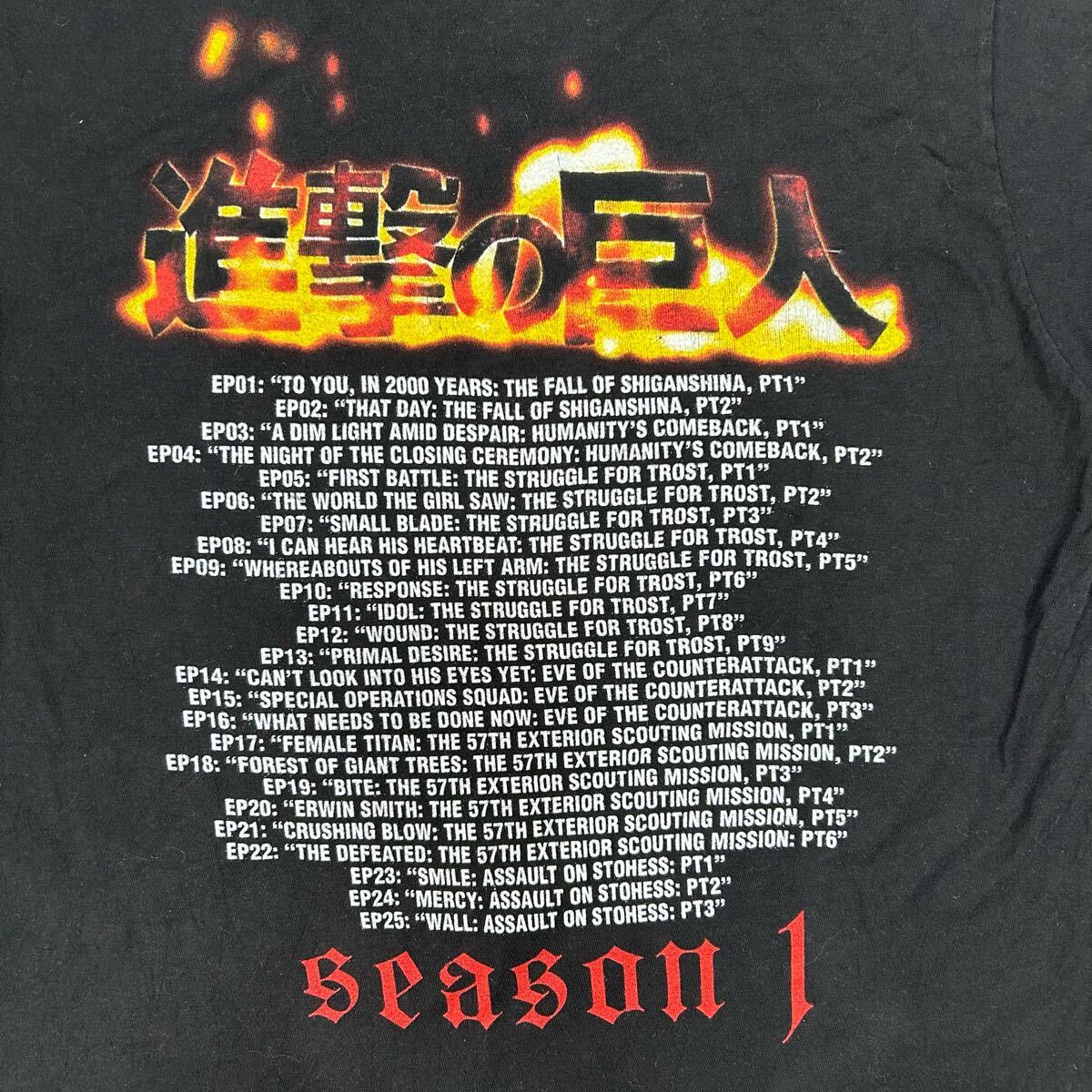 進撃の巨人のシーズン1をテーマにした黒いTシャツ。