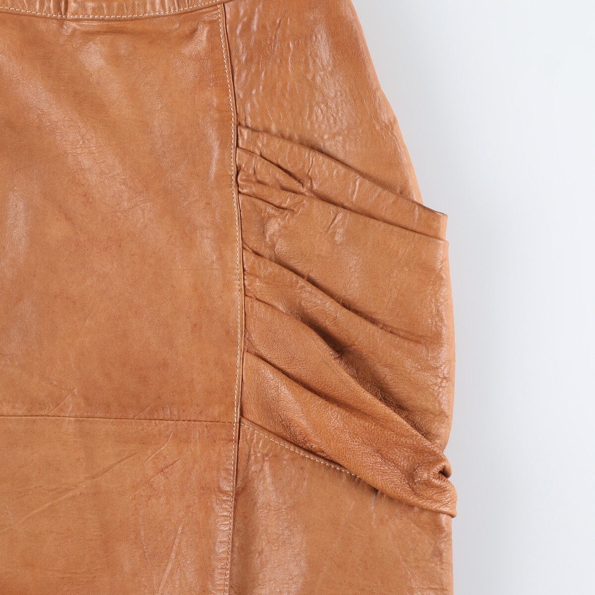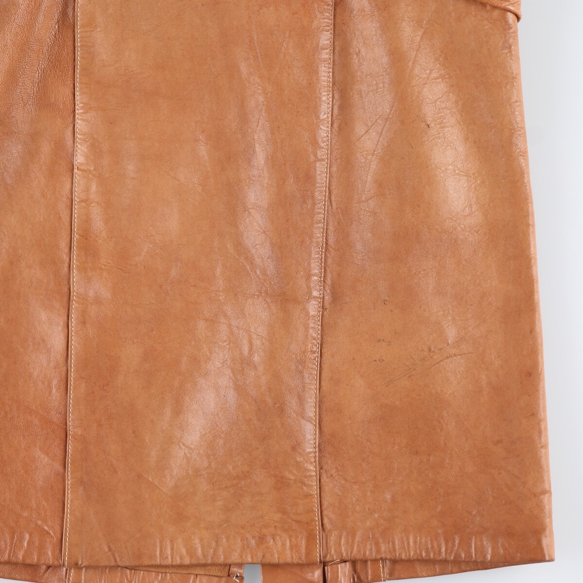 | 着用感: レディースM 表記サイズ: 38 総丈: 75.5cm ウエスト: 68cm スリット長さ: 25.5cm ![]() | ![]() ランク:C USEDレザーアイテムですので使用感、汚れ、擦れなどございますがレザーアイテムのリアルな表情として捉えていただきご注文御願いします。 【状態追記】 ●前、下腹部・左腿・膝下全体に汚れ ●前、左腿・裾に擦れ ●右ポケットに擦れ・ポケット内にリペア跡 ●後、ヒップ・右裾・左腿に汚れ ●ライナー、両面全体に汚れ |