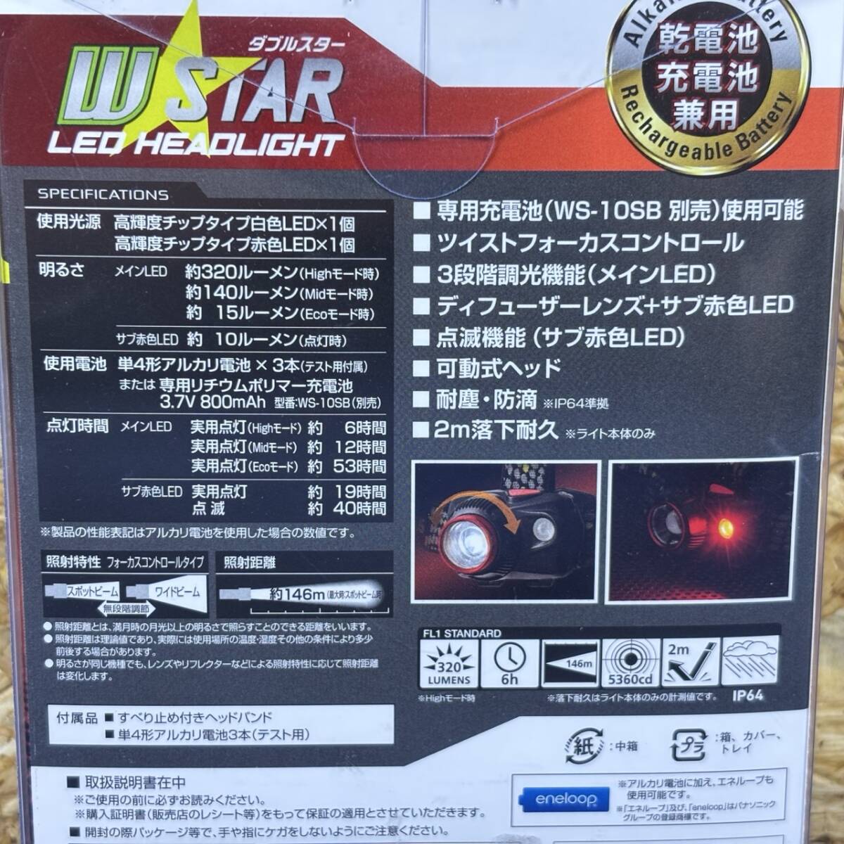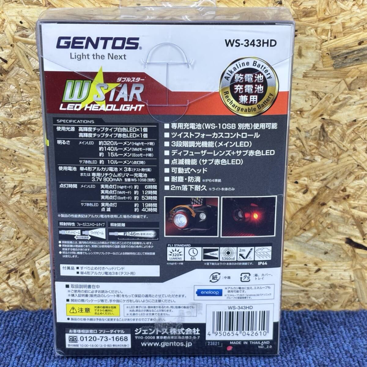 【新品未使用品】GENTOS ジェントス LEDヘッドライト ダブルスター WS-343HD 320ルーメン 乾電池/充電池兼用 A413