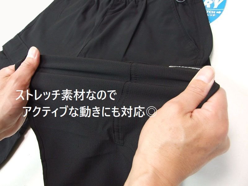 吸汗速乾ドライ素材、カーゴポケット付、UVカット、2wayストレッチ