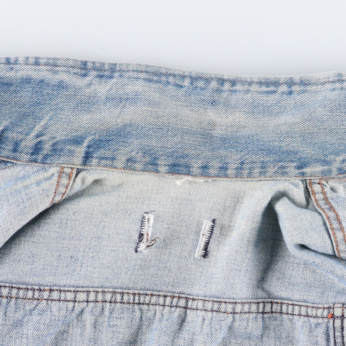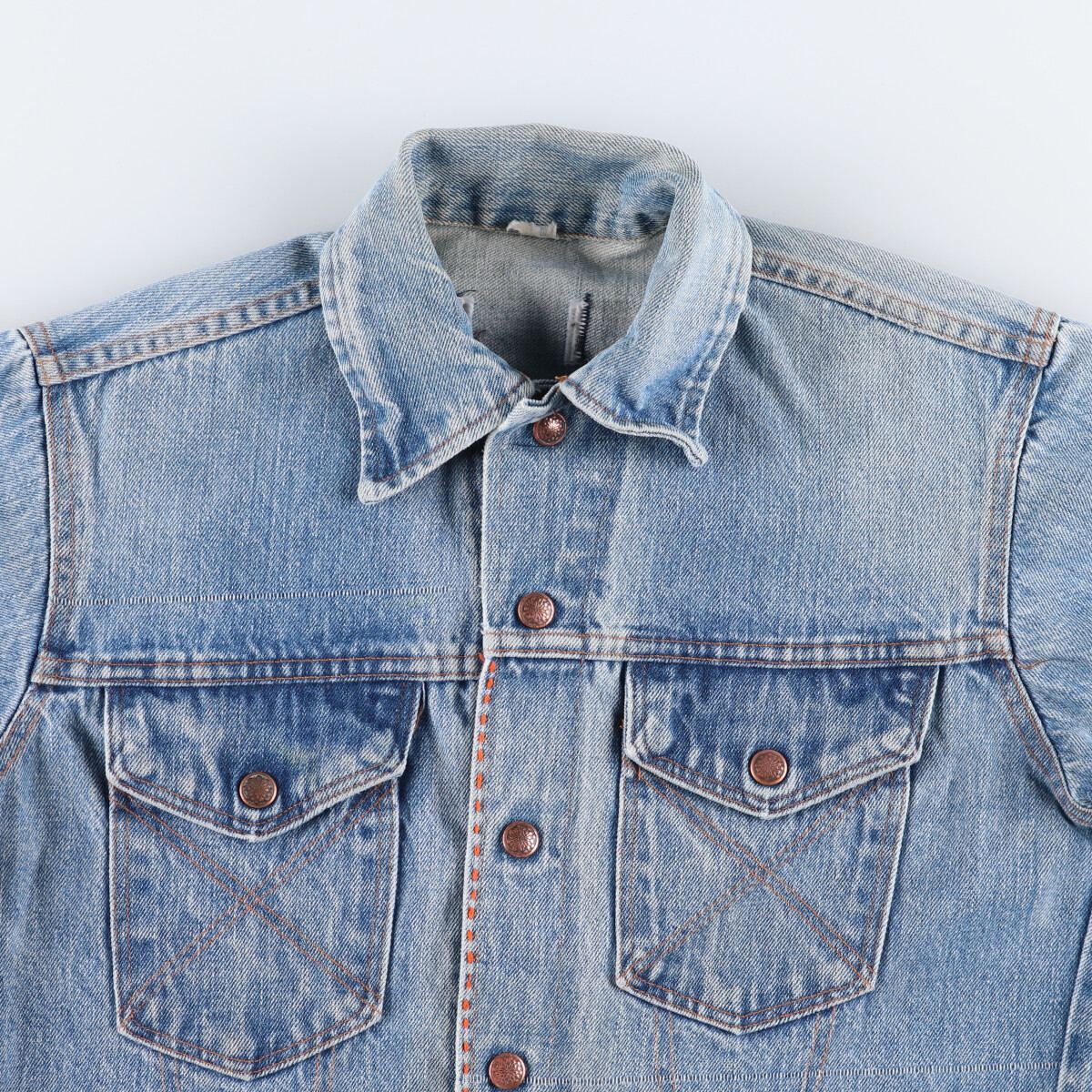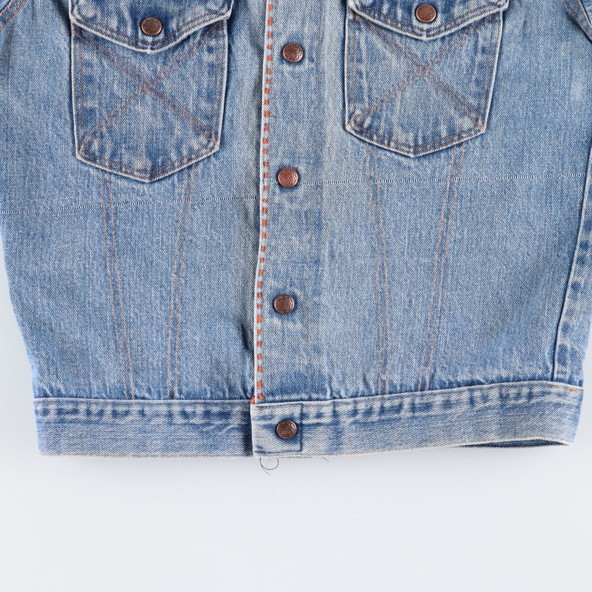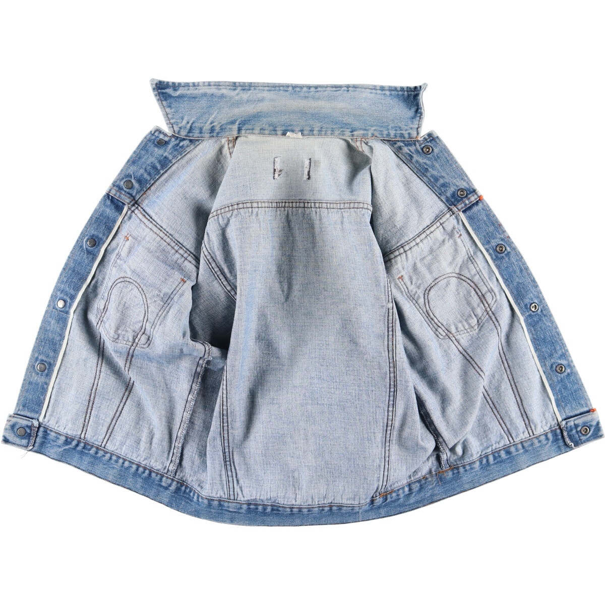 | 着用感: レディースL 表記サイズ: 不明 着丈: 56cm 身幅: 50.5cm 肩幅: 43cm 袖丈: 59.5cm ![]() | ![]() ランク:C USEDデニムですので使用感、擦れ、色落ちなどございますが、まだまだご愛用していただけます。 古着という事をご理解の上ご注文よろしくお願いします。 【状態追記】 ●全体に汚れ ●前、右胸・腹部に糸引き ●前、後、両袖に擦れ ●後、左袖に破れ ●内、左袖に擦れ |