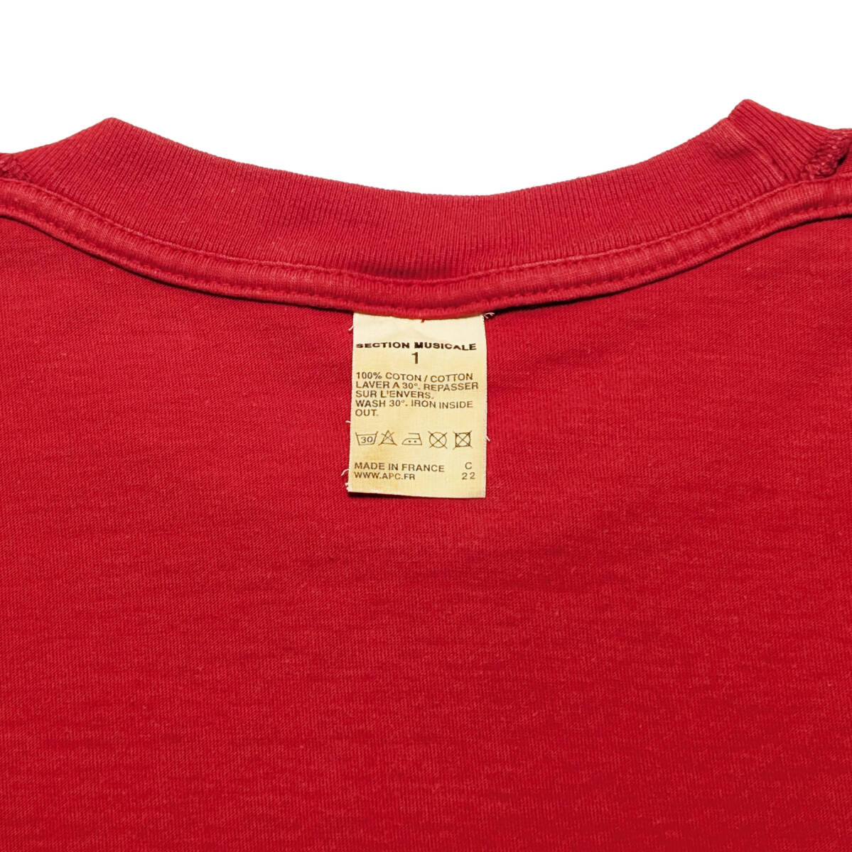 仕事の都合で発送まで最大1週間かかります。事前にご了承ください。アーペーセーのフランス製Tシャツ。90年代当時のもの。少しだけフェードした赤いお色です。着込んでもっとフェードさせていっても良さそうです。右袖にのみプリントが入るデザイン、めずらしいものかと思います。フランス製、お色レッド、サイズ表記1、素材表記コットン100%。ほどほど着用感はありますが、ダメージやヨゴレのない状態です。送料はこちらで負担します。正規品ですので、ご安心ください。ご不明な点はお気軽にご質問ください。