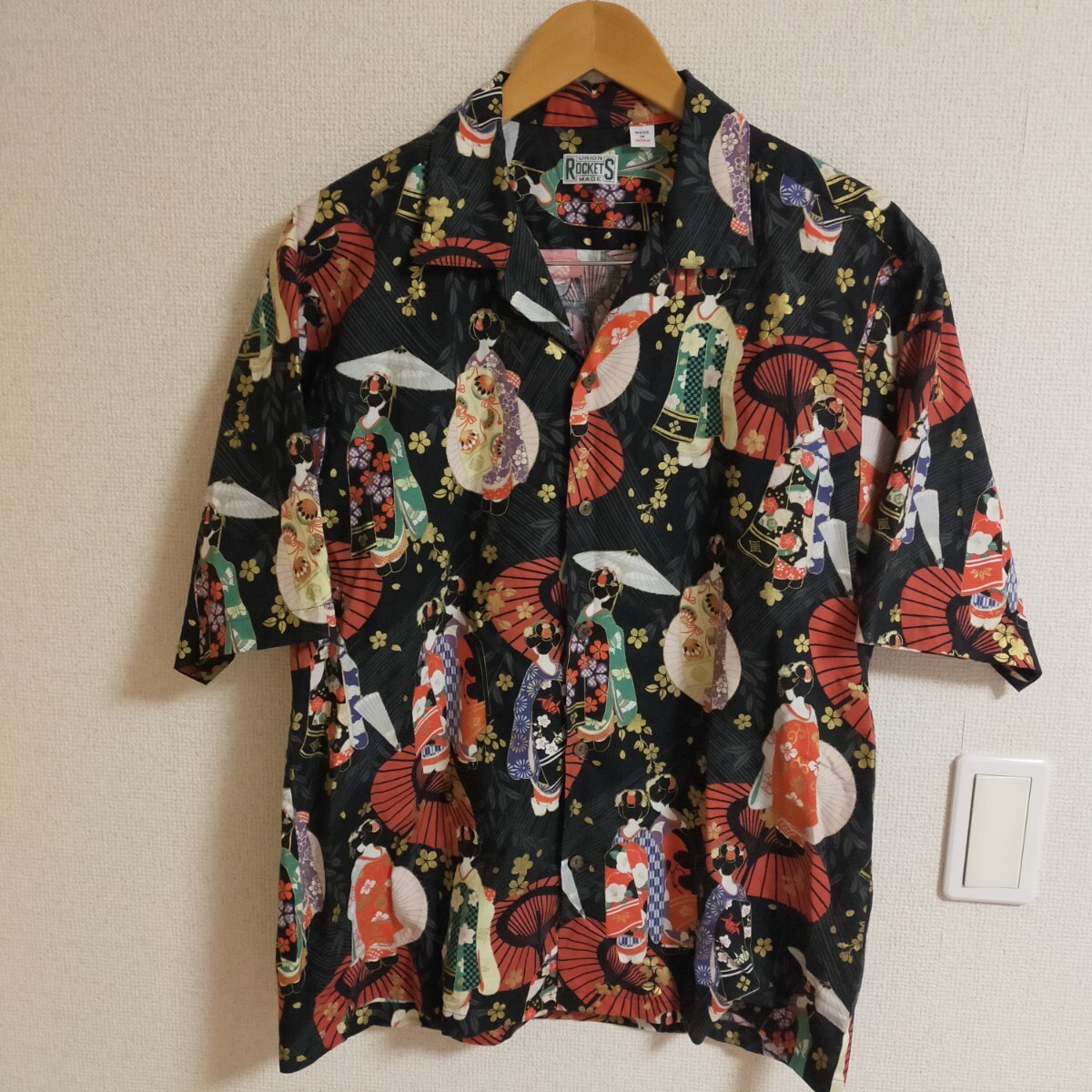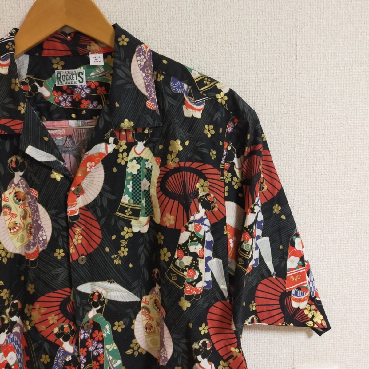 | UNION MADE ROCKETS ユニオンメイド ロケッツ 和柄 アロハシャツ 舞子柄 開襟シャツ 半袖 オープンカラー 日本製 ヴィンテージ M ブラック(黒) | |