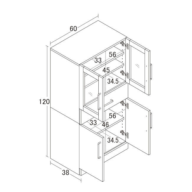 ●【サイズ】(約)幅60x奥行38x高さ120cm