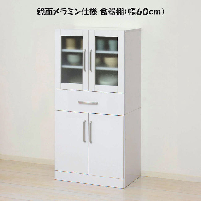 鏡面メラミン仕様 食器棚 幅60cm キッチン収納 カップボード(761)