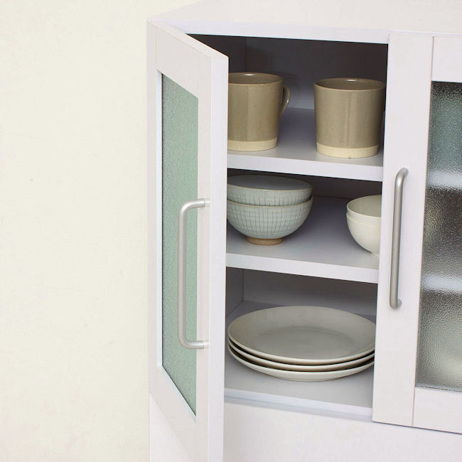 ◆メラミン仕様の食器棚。天板、前板、側板は鏡面メラミンボードで、