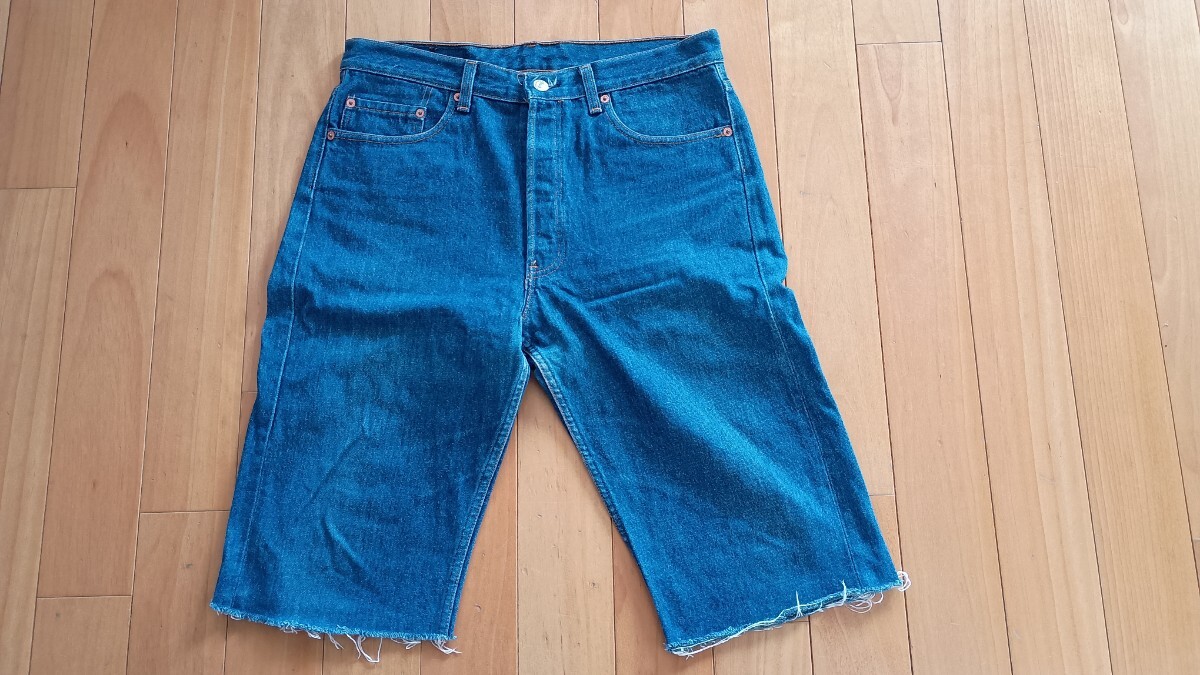 オールドリーバイス501のカットオフハーフパンツです。サイズはW34で実寸はウエスト約84㎝、股下約31㎝、裾幅約23㎝です。画像のようにお尻の部分に少し色落ちはありますがデニムの色は濃く美色です。USEDになりますので完品を望まれる方はご入札をお控えください。ヤマト運輸60サイズで発送します。出品している物は『新品』の記載がなければ古着、USEDになります。状態等に見落としがあるかも分かりませんがノークレーム、ノーリターンでお願いします。画像との色の違いや実際の物の色の感じ方、特に古着の場合、汚れの大きさ、度合い、美品、良品等の状態の判断等については個人差がかなりありますので、神経質な方や気になる方は絶対にご入札しないようにお願いします。汚れ、ダメージの画像は全てを添付することが不可能な場合もありますので、その点もご理解いただけない方はご入札しないようにお願いします。ご質問いただければ、時間が多少かかる場合もありますが回答させていただきます。ただし、オークション終了直前、評価の悪い方、意味の分からないご質問には回答しません。オークション終了後は、2日以内のご返信、3日以内のご入金をお願いします。お守りいただけない場合は削除させていただきますが、ご連絡いただければ多少の融通は可能です。また、オークション終了後の決済方法、発送方法に関しての変更は一切対応いたしません。定形外発送の場合、配送、配達の事故についての補償はありません。また、送料で誤差が出る場合がありますが返金いたしませんのでご了承ください。評価が不要な方はこちらの評価も不要です。仕事をしているため連絡、返信、発送、評価が遅れる場合があります。落札者様が不安にならないようなお取引を心掛けますが、スムーズなお取引をさせていただくため落札者様もご協力お願いします。以上をご理解いただけない方は絶対にご入札しないようにお願いします。新規の方、評価の悪い方はこちらの判断で削除させていただく場合がありますのでご了承ください。他にも出品しています。