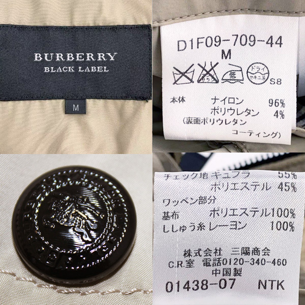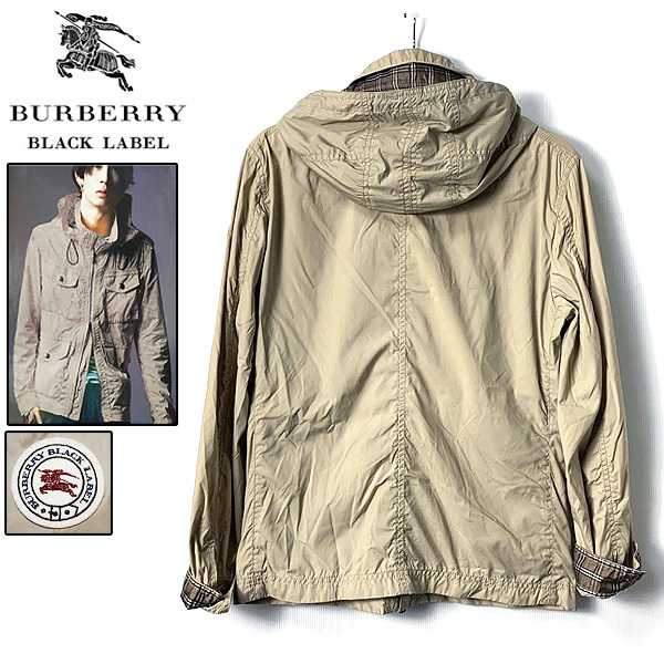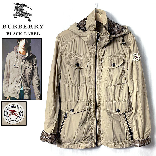 バーバリー ブラックレーベル ホース刺繍ワッペン×ノバチェック M-65タイプ ダブルZIP 2WAYマウンテンパーカー