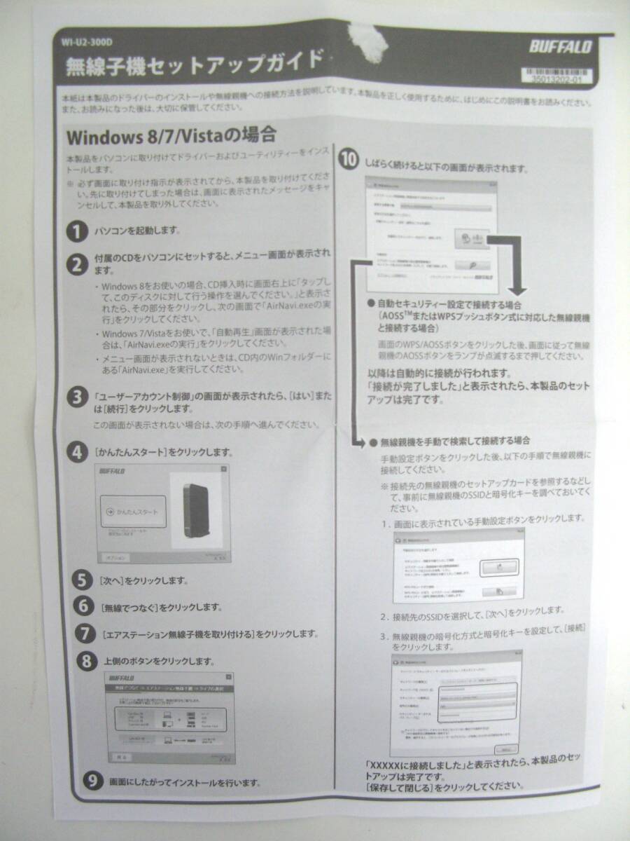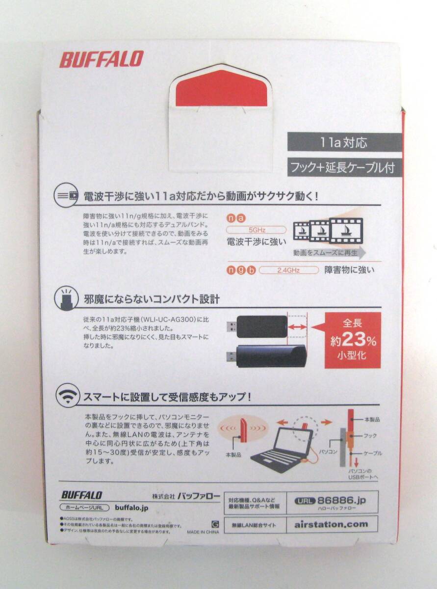 【菊水-388】BUFFALO/Wi-Fi無線LAN子機/ WI-U2-300D USB2用 11a対応/中古品(TK) |