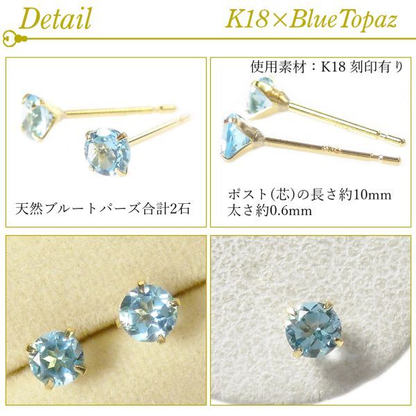 ブルートパーズ ピアス 18k k18 天然石 11月誕生石 18金ゴールド レディース 50代 40代 60代 30代 20代 おしゃれ 小さい 小さめ ギフト