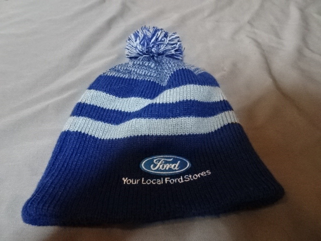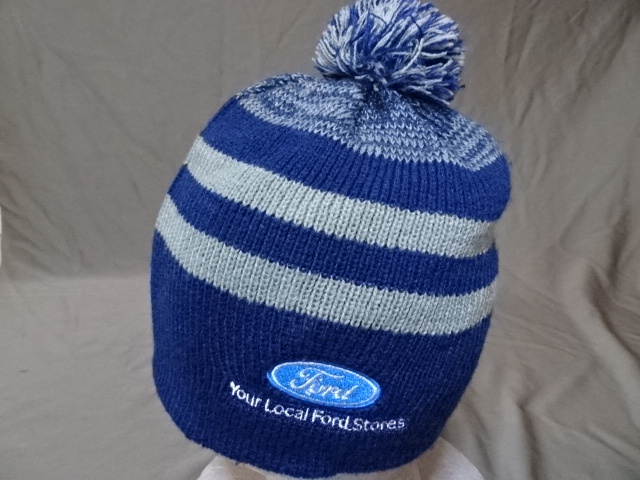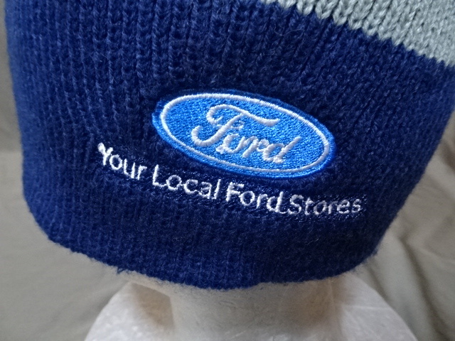 激レア USA購入 アメリカ企業モノ 自働車メーカー 【FORD】フォード販売代理店 ロゴ刺繍入り ニットキャップ 青灰 中古良品