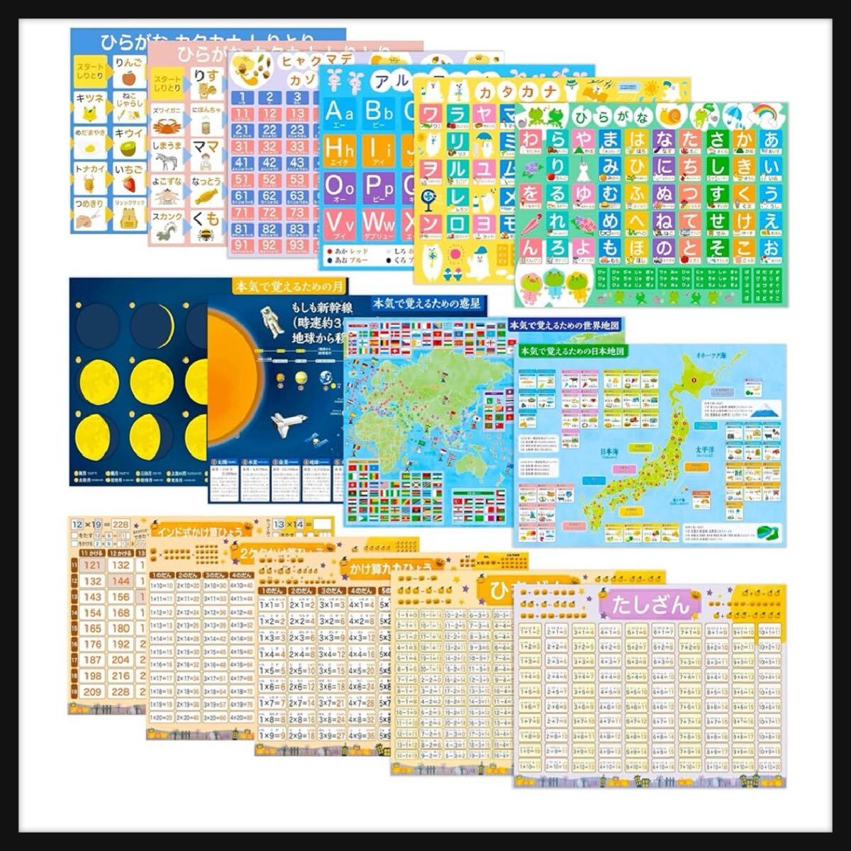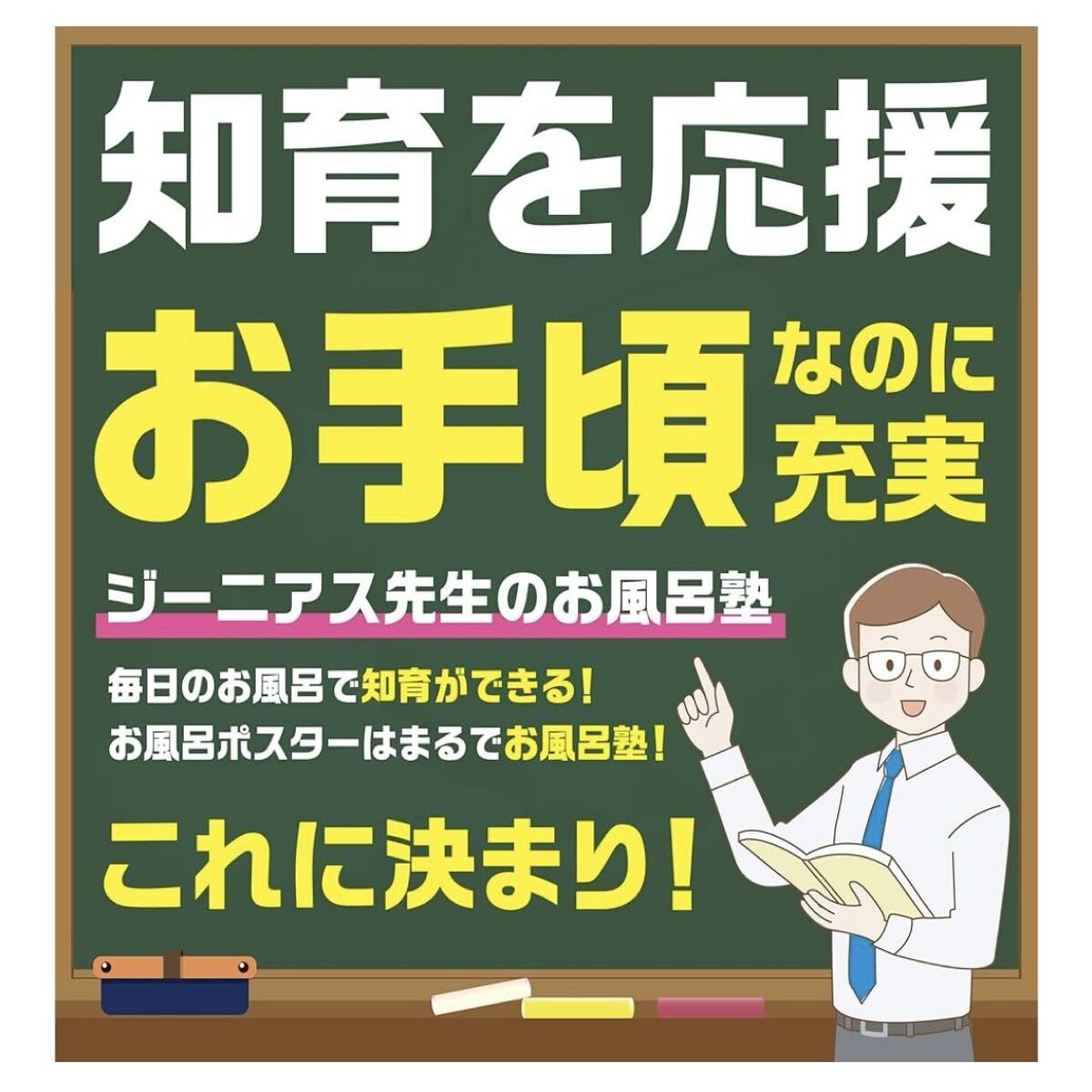 ジーニアス先生のお風呂塾 かわいいお風呂ポスター 入学祝い 豪華15枚セット B3サイズ ひらがな・カタカナ・数字100・アルファベット しりとり 知育 お受験 玩具 おもちゃ 知育玩具