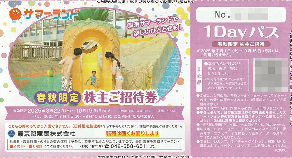 春秋限定 株主ご招待券は7月1日~9月15日は、利用できません。