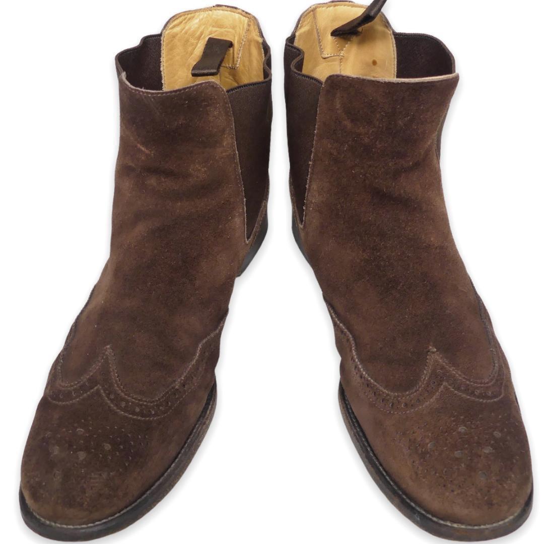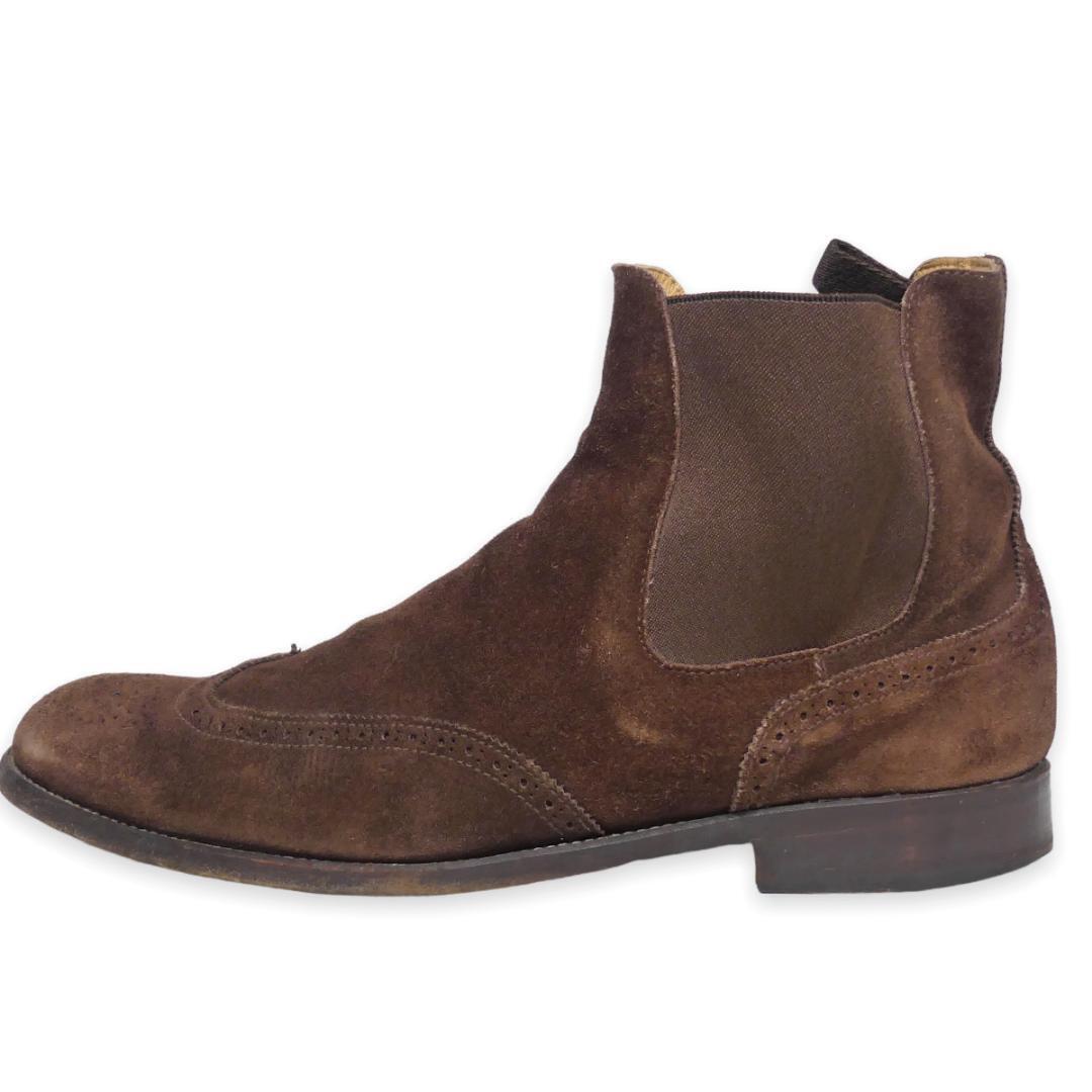 即決★イタリア製 LANCIOTTI DE VERZI★25.5cm レザーサイドゴアブーツ ランチョッティデヴェルジ メンズ 41 茶 ウィングチップ 本革 本皮