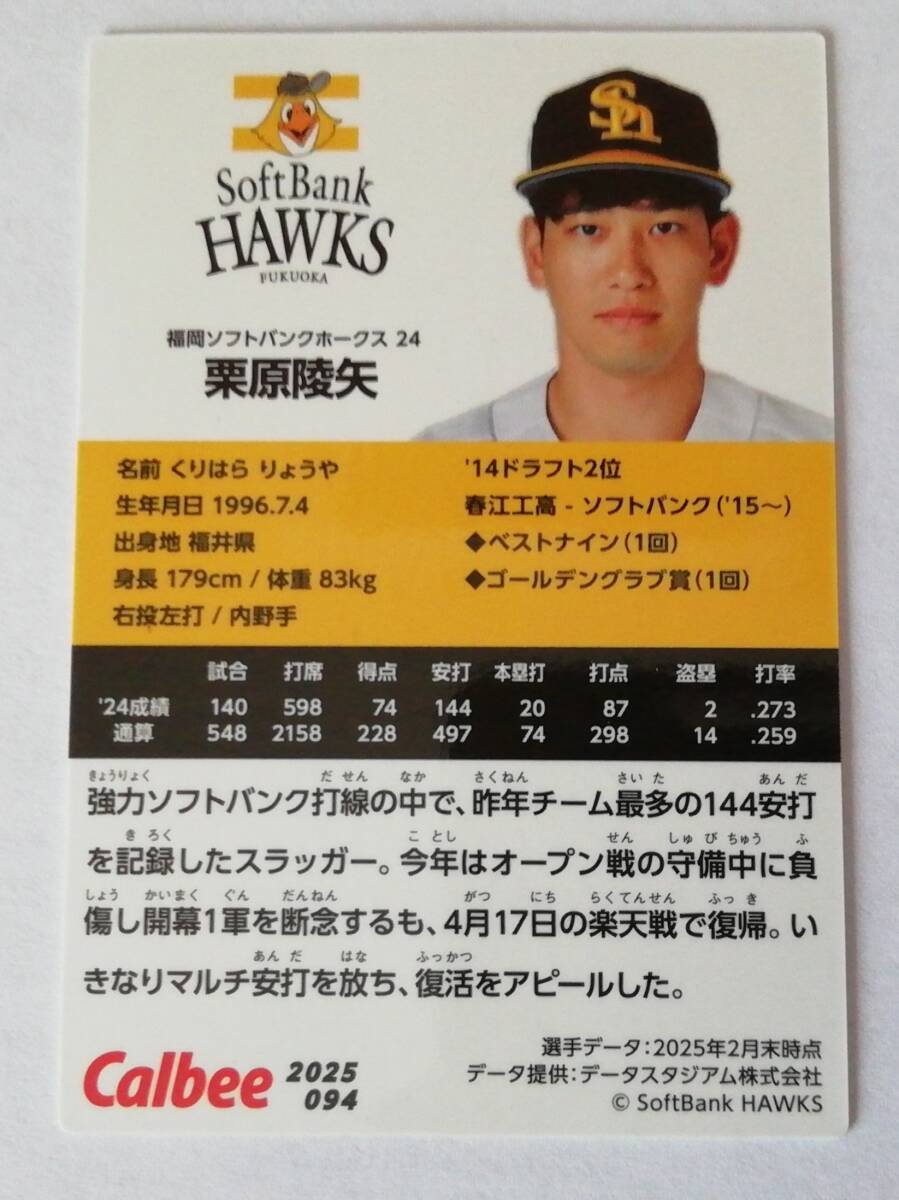 カルビー プロ野球チップス 2025年 第2弾[福岡ソフトバンクホークス] 栗原陵矢 094