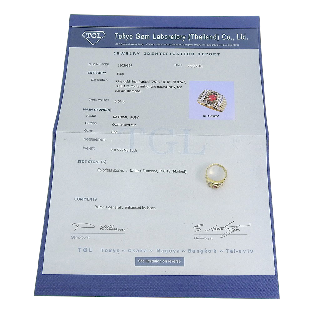 K18YG 石:ルビー 0.57ct メレダイヤモンド 0.13ct
