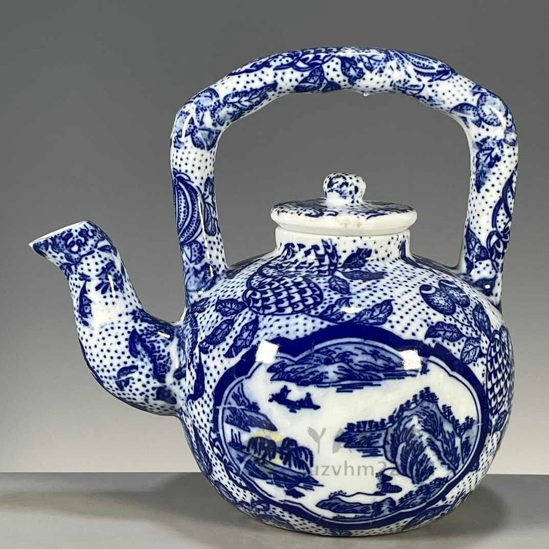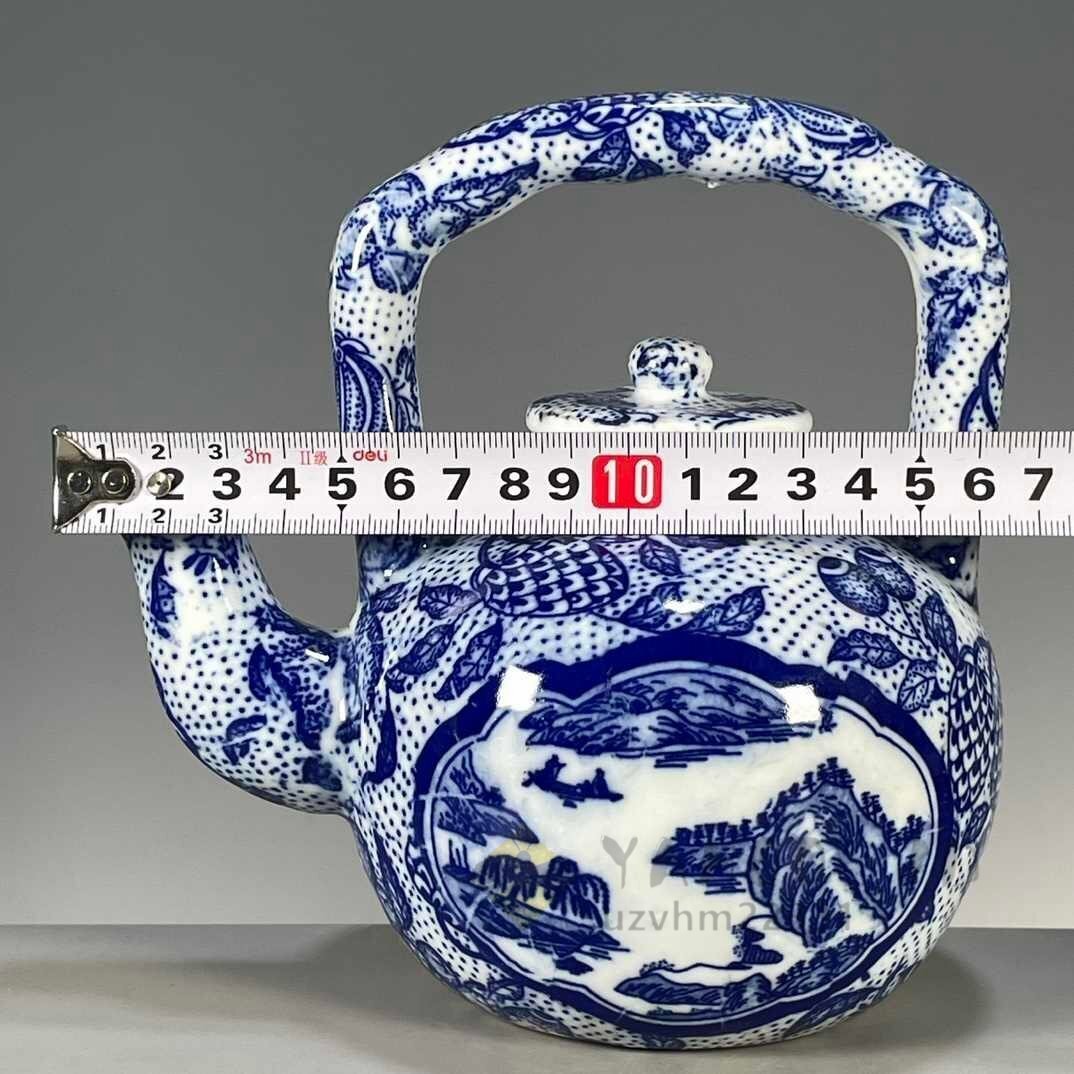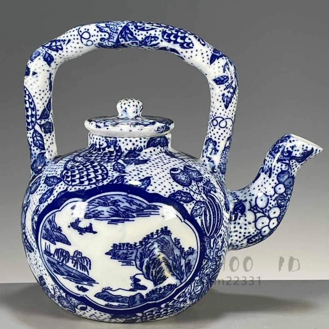 青花開窓山水図紋急須 置物 開片 装飾品 磁器 中国陶磁 収蔵品 中国美術品コレクション