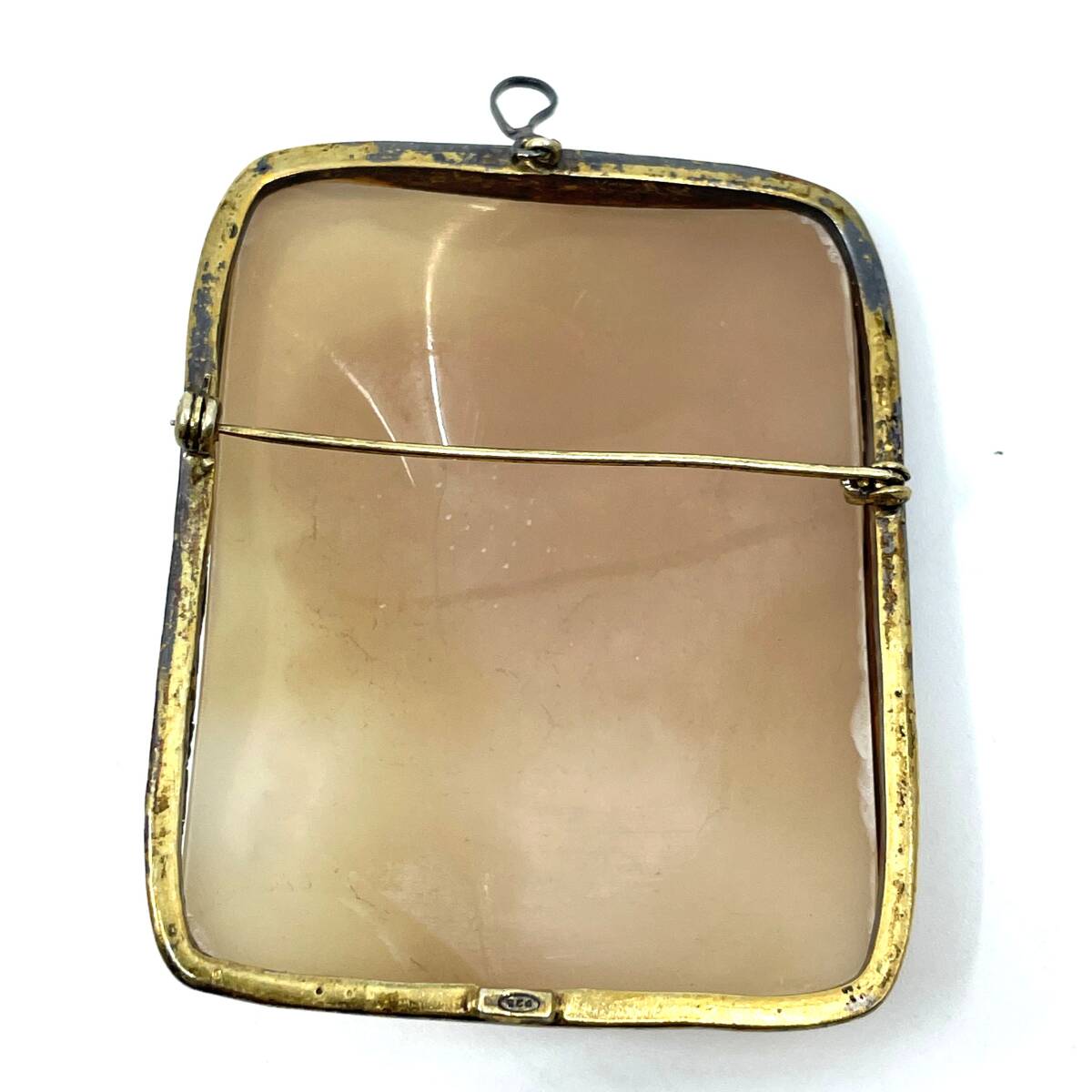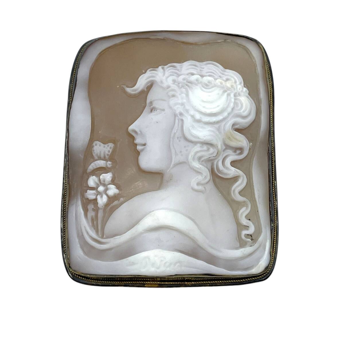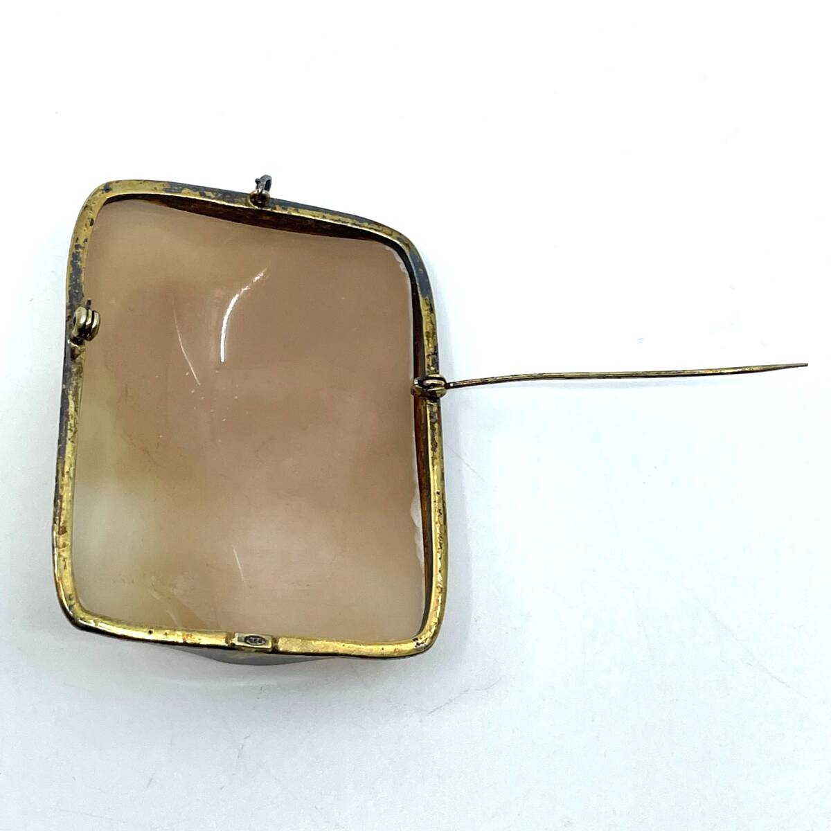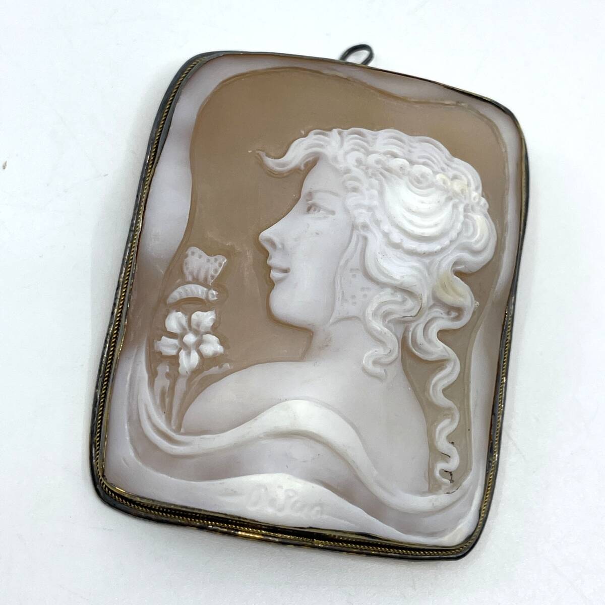 カメオ ブローチ ネックレストップ 2way 925刻印 スクエア 大ぶり 立体 横顔 婦人 花 フラワー バタフライ