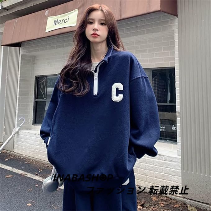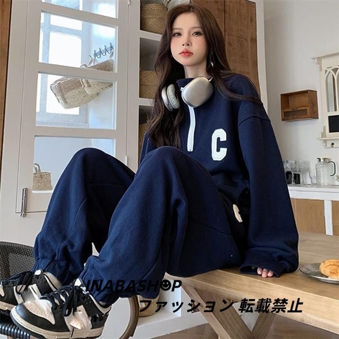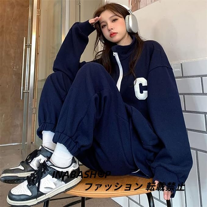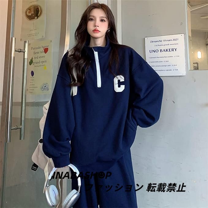 ハーフファスナー ジャージ 上下セット レディース セットアップ スポーツ 大きいサイズ ト ゆったり ストリート ファッション 韓国系 春秋