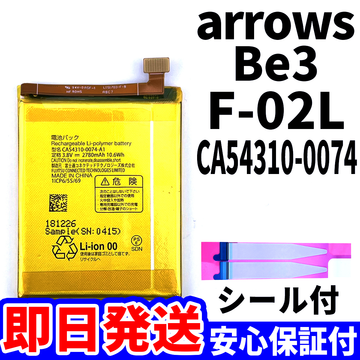 ★arrows Be3 F-02L バッテリー交換 CA54310-0074 電池パック交換キット battery repair 電池交換専用両面テープ バッテリー単品 工具なし★