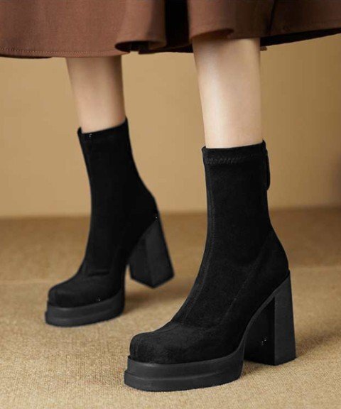 韓国 厚底ショートブーツ レディース 疲れないハイヒールスエードブーツ きれいめ 歩きやすい靴 アンクルブーツ履きやすい
