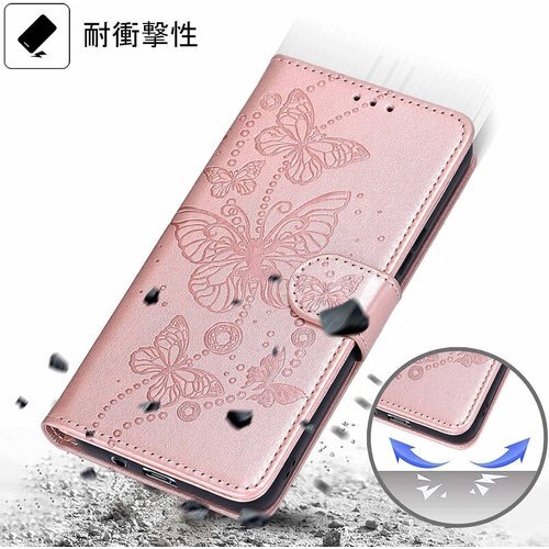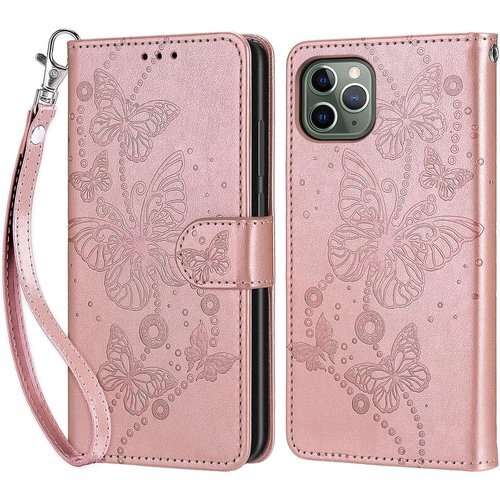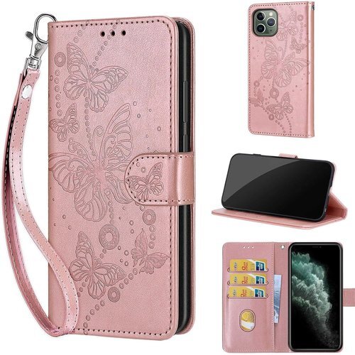 iPhone 11 Pro Max ケース 手帳型 対応 いphone11 pro max 財布型 携帯カバー iphone11promaxスマホケース 高PUレザー 耐衝撃 耐摩擦 全面保護 ホルダーバンプパタカード収納 軽量 手触りが良い 人気上品な シンプル気質 ギフト ローズゴールドの蝶 1237