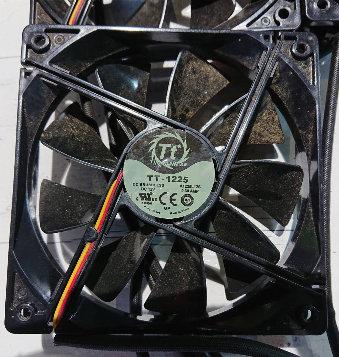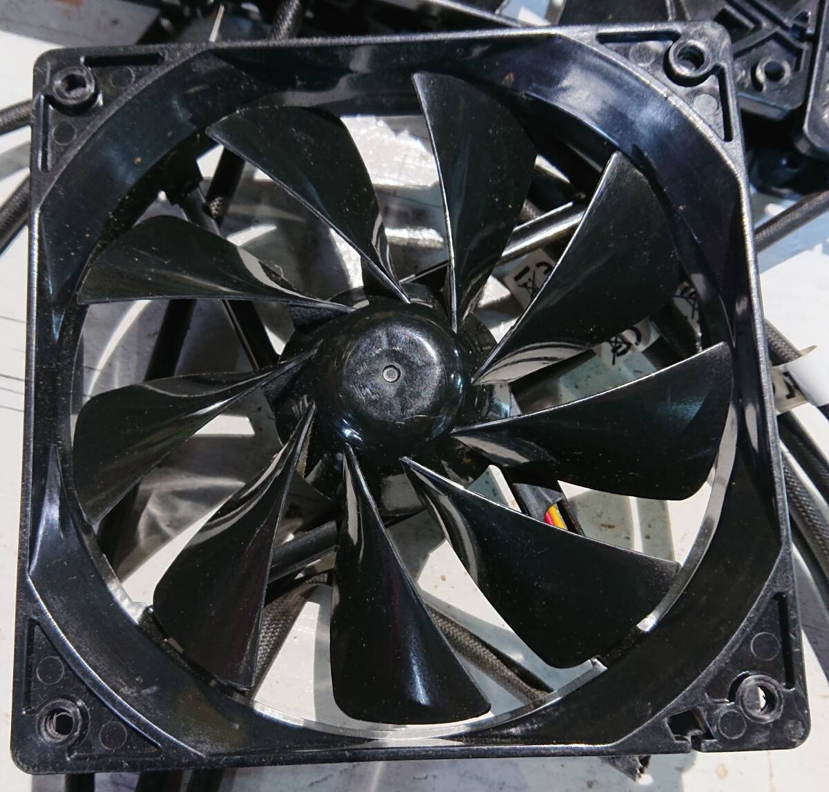 未使用品の様ですが、保管状況が悪かったので、汚れが付着しています。ファンガードが付属します。パソコン用と言うより、配電盤や制御盤の排熱用や、自動車用に流用などに宜しいかと。