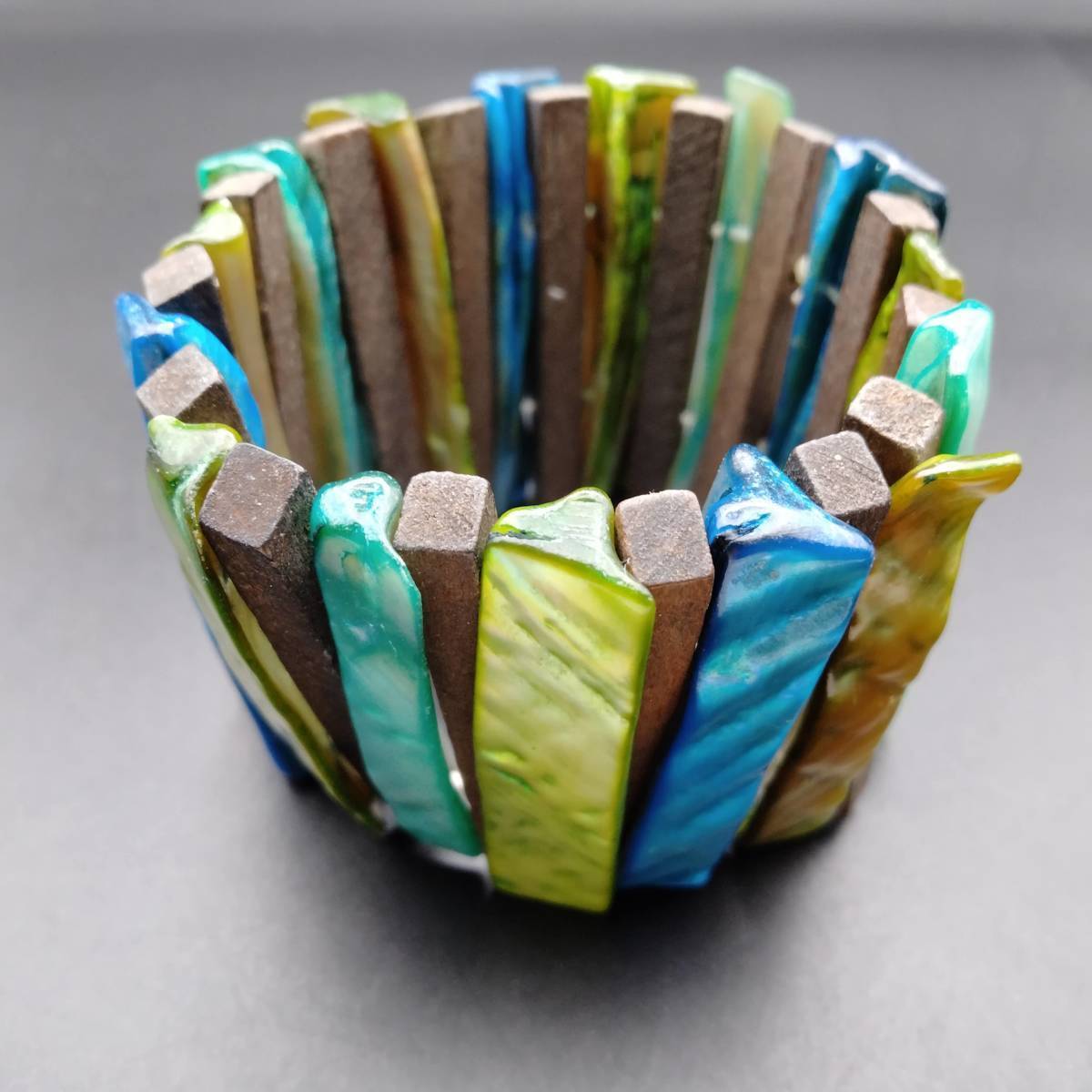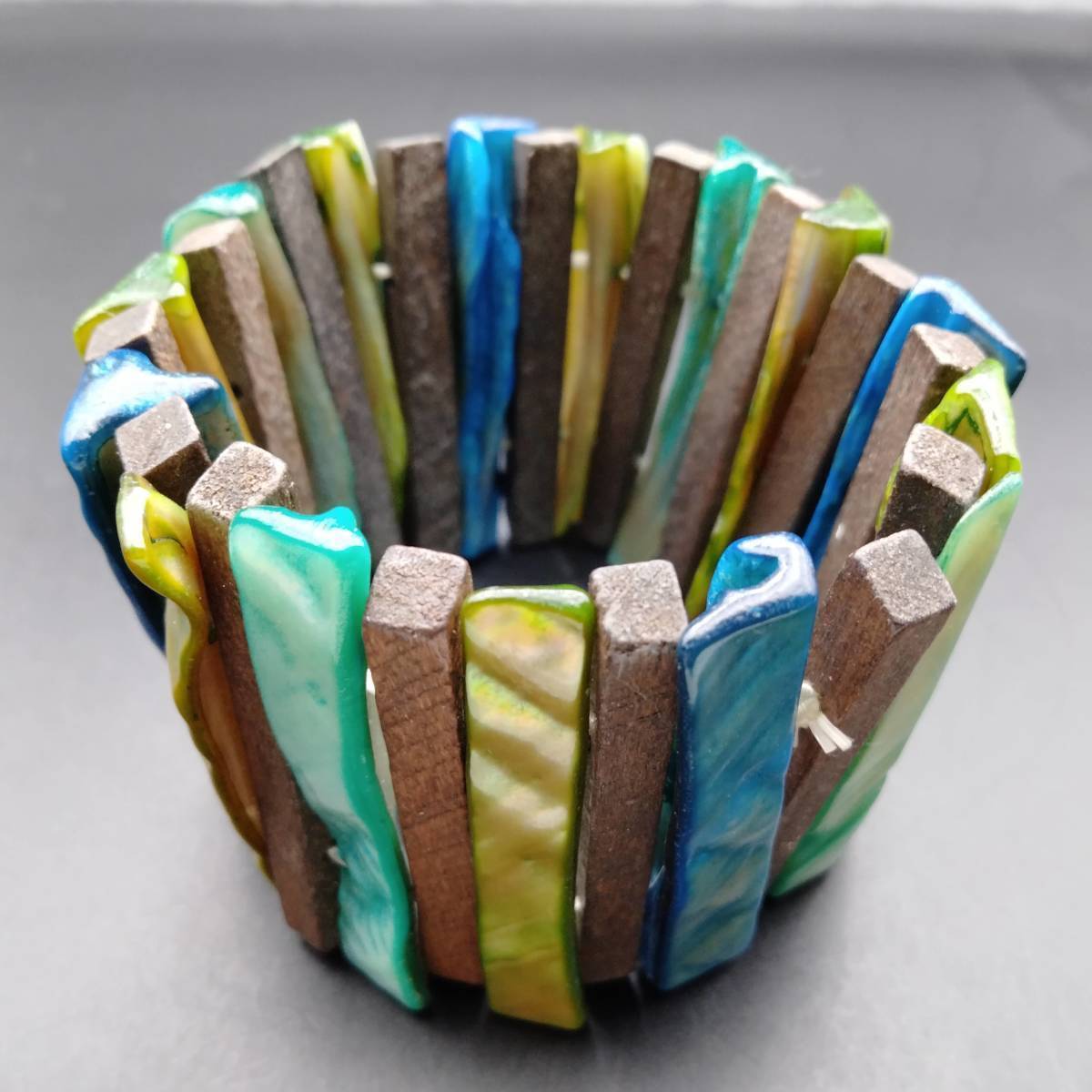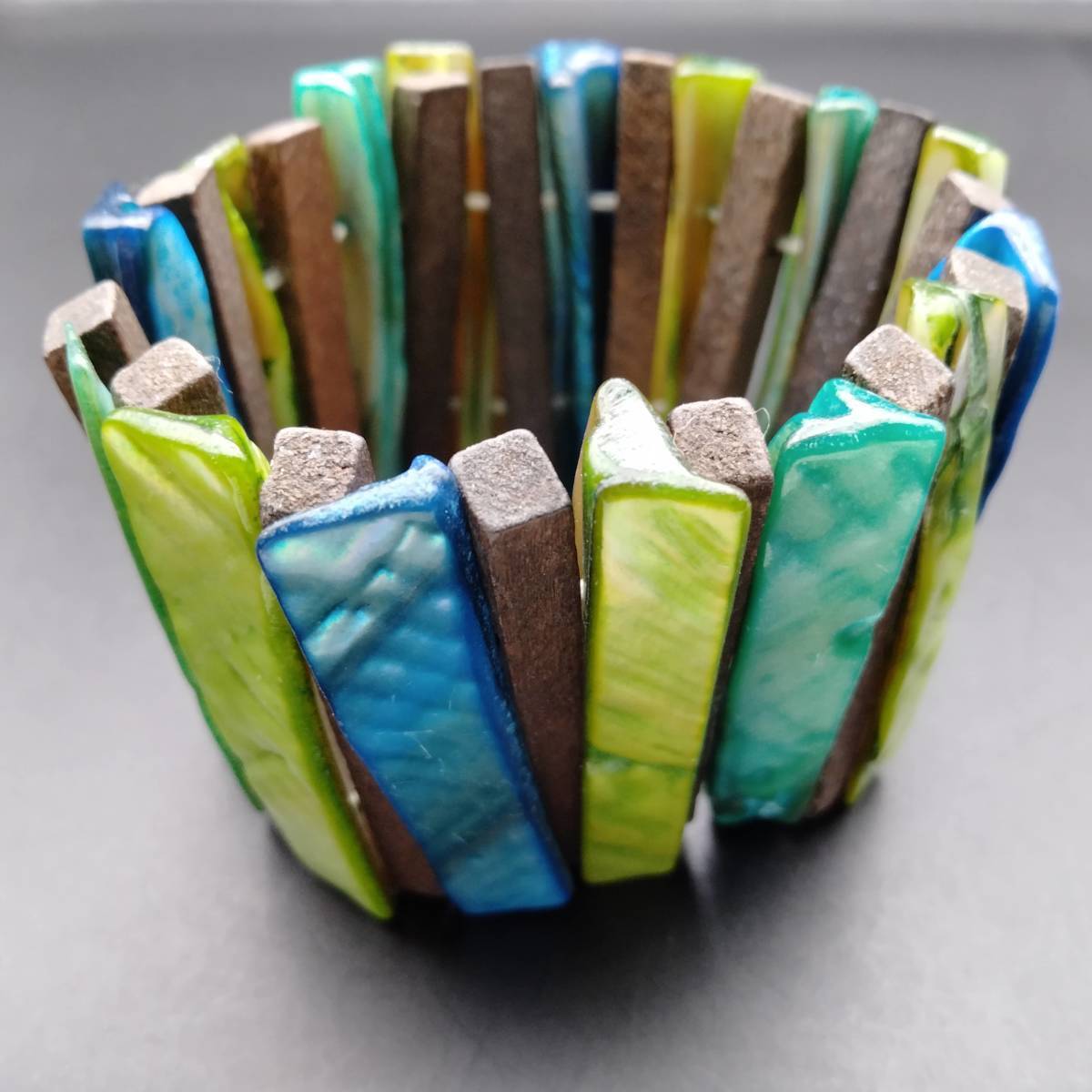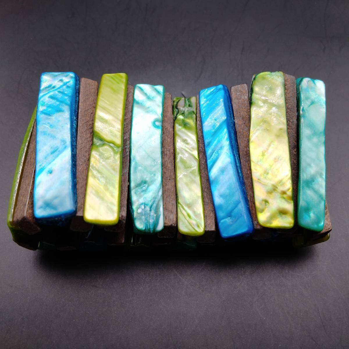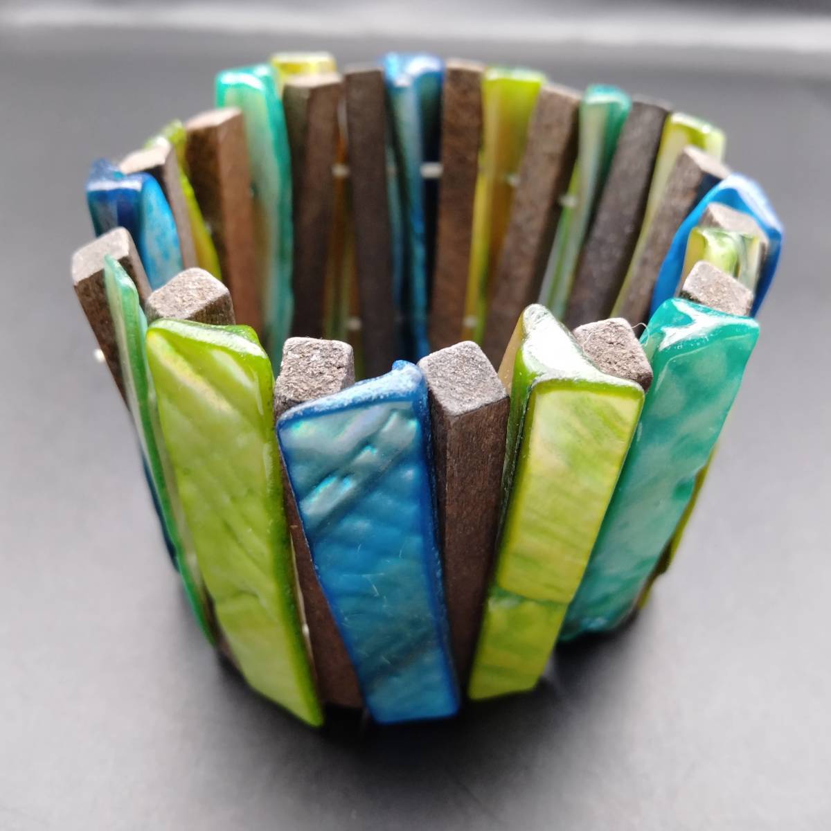 ブルー グリーン グラデーションカラー スティックストーン ヴィンテージ ブレスレット 極幅広 レトロ ジュエリー 存在感 SAE①