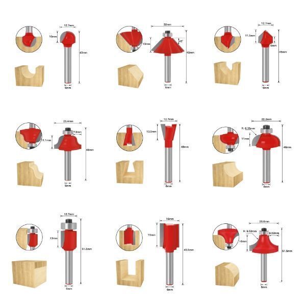 軸径は6mm!超硬 トリマービット 12本セットです。