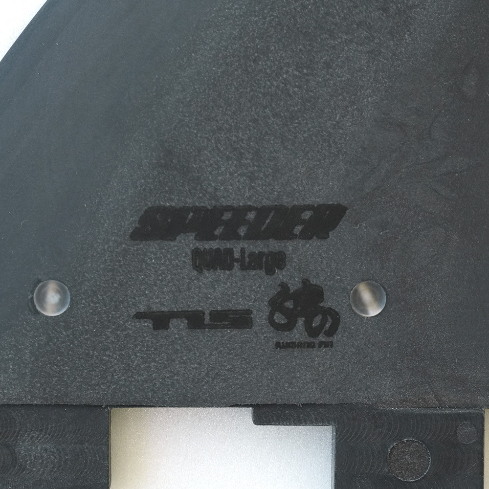 【 TLS SPEEDER FIN TRI-QUAD LARGE SET FCS2 対応 】 フィンに”スプリング(バネ)”を内蔵することで、驚くべきスピードをもたらす最新テクノロジーフィン。航空機で使われた軽量かつ高強度のカーボンを再利用。 クアッドでもスラスターでもセッティング可能な5枚セット ■ FRONT SIDE BASE : 116mm DEPTH : 119mm ■ BACK SIDE BASE : 102mm DEPTH : 105.5mm ■ CENTER FIN BASE : 114mm DEPTH : 114mm ■ 仕様 ・FCS 2 タブ対応 *FCS 2 タブのリア側をイモネジで固定してご利用ください。 *イモネジは含まれておりません。 *FCS 1 タブは非対応 ・5枚フィンセット ・リサイクルカーボン+高強度樹脂のベース ・サビに強いスチール製スプリング内臓 ・カーボンブラックカラー ・日本製