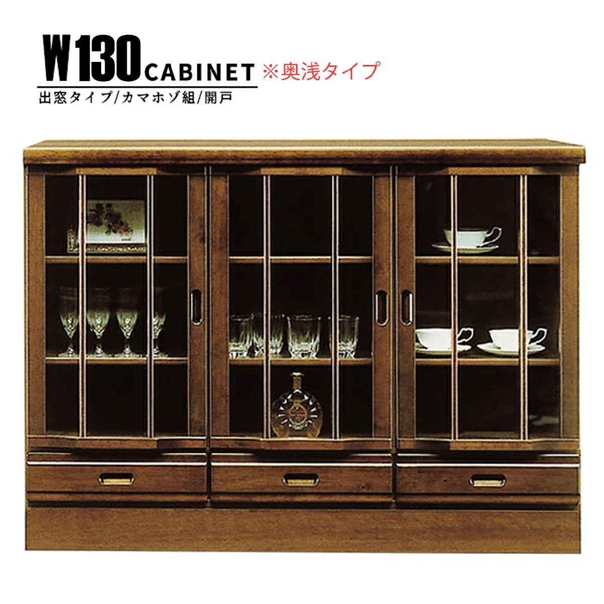 サイドボード キャビネット 完成品 幅130cm 収納 薄型 ガラス扉 リビングボード 和モダン ●ブラウン